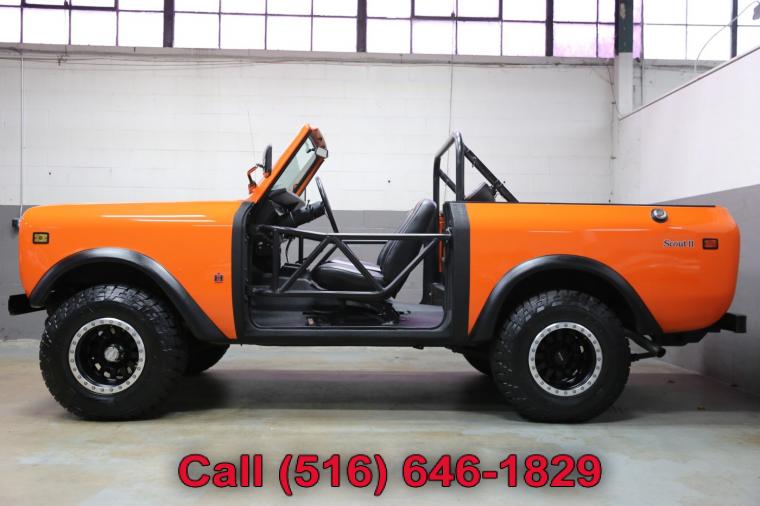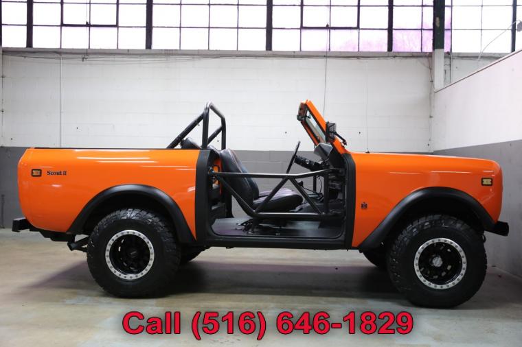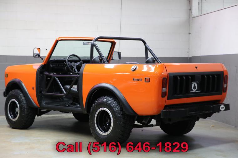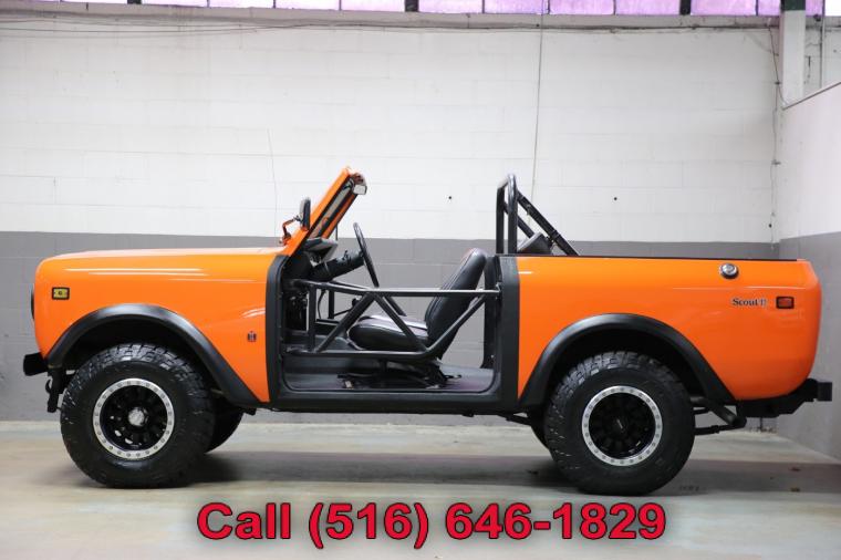 1976 International Scout II finished with an Orange exterior and Black seats with checkerboard inserts. This Scout II has an International Harvester 345 V8 Engine, Automatic Transmission, 4 Wheel Drive, AC and Heat and much more. This Scout II has been modified with desirable upgrades such as 15 Inch Method Bead Lock Wheels, Kenwood Sound System, Tubed Doors and more. This really is the ultimate open air vintage truck. The V8 engine is strong and powerful and the automatic transmission shifts properly through all of the gears. The steering and brakes are working properly as well. This really is a fantastic Scout II to drive. The interior is very nice. The Black seats with checkerboard insets and matching Orange seat piping are in excellent condition (see pictures) showing just minimal wear to the seats. The dashboard and floors look great as well. The exterior is what really sets this particular Scout II apart from the rest. The Orange paint is in fantastic condition (see pictures) with no major scratches or dents anywhere at all. The paint is bright and shiny with plenty of luster. Add the 15 inch Method wheels mounted on great tires and this Scout II really does look special. The 1976 International Scout II really is the ultimate summer cruiser (no top and tube doors) that would be fantastic for a lake, beach or simply just a fun drive. It has iconic looks, plenty of interior room along with all of the feel of a vintage truck that can be used on a regular basis. The only real apologies to this 1976 Scout II are a few typical nicks and scratches and some paint imperfections behind the rear seat (see pictures). Please feel free to call me (Matt 516-646-1829) with any additional questions you may have.