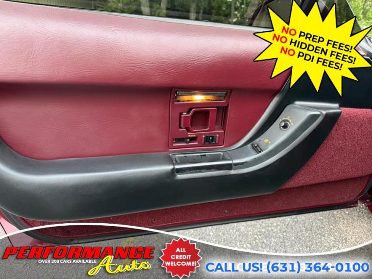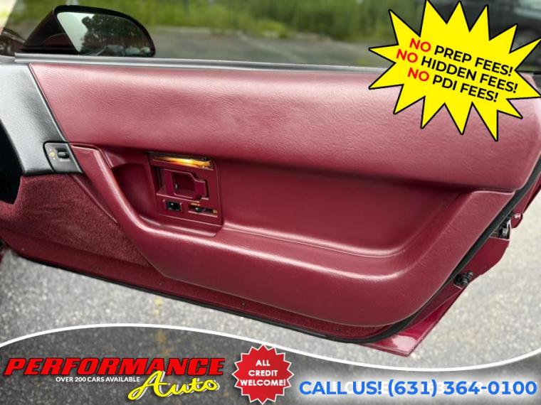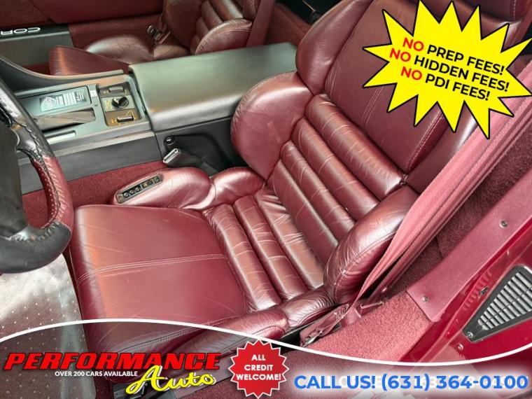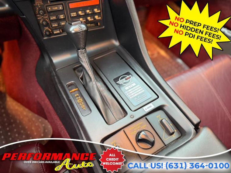 100% Clean Carfax! Only 41K Miles! Ruby Red with Burgundy Interior! 40th Anniversary! Automatic! 1993 Chevrolet Corvette Coupe 5.7L! Come in for a Test Drive! REMEMBER THE PERFORMANCE AUTO DIFFERENCE - NO PREP FEES! NO HIDDEN FEES! AND OUR PRICES DO NOT NEED TO REFLECT A TRADE OR DOWN PAYMENT! OUR PRICES ARE REAL! DON'T BE SCAMMED BY FINE PRINT! Government fees like Sales Tax, Inspection, DMV Fees and the State Limited $175 Doc processing fee are the ONLY additional fees allowed. Shame on any dealer who advertises a vehicle for a price that you CANNOT buy it for. Just be aware, if you cannot trust a dealer with their advertised price, should you trust them after that??? Shame on third party advertiser websites where consumers go to shop for cars and these sites allow this to happen and then honor these deceptive dealers with badges for "Great Deals" when after you add all their fees in, its NOT a great deal anymore. As per the AG in NY, It is against the law to advertise a vehicle for a price and then have hidden fees or down payments not included in the price. And now please beware of the another scam -- Dealers offering a "promotional price" only if you finance the vehicle with their lenders! This is also illegal and deceptive. You also do NOT need to finance to get our prices! A price should be exactly that - A PRICE! Performance Auto has been selling quality pre-owned automobiles since October 2000. 20-30% of our sales are REPEAT BUSINESS! You will feel no pressure when you enter our facility and meet one of our friendly sales representatives. All of the vehicles that we sell have to be NYS Inspected! As a Licensed New York State Dealer (Facility #7095633), we are required to provide you with a Clear Lien Free Title. As a Certified Plate program dealer, we also have the ability to issue new license plates or transfer your existing plates to your new vehicle. Please be aware of other "dealers" that sell vehicles using "out of state" licenses to avoid inspecting vehicles!