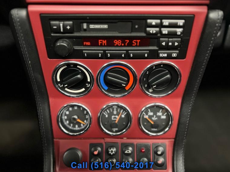 Leather Seats, Seating capacity: 2, Split front seats: Bucket front seats, Heated front seats: Heated driver and front passenger seats, Driver seat direction: Driver seat with 6-way directional controls, Passenger seat direction: Front passenger seat with 6-way directional controls, Front head restraints: Fixed front seat head restraints, Front seat upholstery: Leather front seat upholstery, Front seatback upholstery: Leather front seatback upholstery, Door trim insert: Leather door trim insert, Floor covering: Full carpet floor covering, Gearshifter material: Leather gear shifter material, Climate control: Manual climate control, Air conditioning: Yes, Steering wheel material: Leather steering wheel, Tinted windows: Light tinted windows, Front seat type: Sport front bucket seats, Power driver seat controls: Driver seat power fore/aft control and height adjustable control, Power passenger seat controls: Passenger seat power fore/aft control and height adjustable control, Manual driver seat controls: Driver seat manual reclining, Manual passenger seat controls: Passenger seat manual reclining, Sport steering wheel: Sport steering wheel, Floor coverage: Full floor coverage, Door mirrors: Power door mirrors, Rear cargo door: Trunk, Heated door mirrors: Heated driver and passenger side door mirrors, Visor driver mirror: Driver visor mirror, Visor passenger mirror: Passenger visor mirror, Beverage holders: Front beverage holders, Floor console: Full floor console, Floor console storage: Floor console storage, Glove box: Illuminated locking glove box, Door bins front: Driver and passenger door bins, Cargo floor type: Carpet cargo area floor, Cargo light: Cargo area light, Cruise control: Cruise control, Cell phone: Cell phone pre-wiring, Driver foot rest: Driver foot rest, 12V power outlets: 1 12V power outlet, Door locks: Power door locks with 2 stage unlocking, Fuel door lock: Power fuel door lock, Tachometer: Tachometer, Engine/electric motor temperature gauge: Engine/electric motor temperature gauge, Clock: Analog clock, Folding door mirrors: Manual folding door mirrors, Engine temperature warning: Engine temperature warning, Battery charge warning: Battery charge warning, Low level warnings: Low level warning for fuel and brake fluid, Key in vehicle warning: Key in vehicle warning, Service interval warning: Service interval indicator, Oil pressure warning: Oil pressure warning, First-row windows: Power first-row windows, One-touch down window: Driver and passenger one-touch down windows, Wipers: Variable intermittent front windshield wipers, Rear windshield: Fixed rear windshield, Day/Night rearview mirror: Day/Night rearview mirror, Headlights on reminder: Headlights on reminder, Illuminated glove box: Illuminated glove box, Trip odometer: Trip odometer, Basic warranty: 48 month/50 000 miles, Powertrain warranty: 48 month/50 000 miles, Corrosion perforation warranty: 72 month/unlimited, Roadside warranty: 48 month/50 000 miles, Maintenance warranty: 36 month/36 000 miles, Brake type: 4-wheel disc brakes, ABS Brakes: 4-wheel antilock (ABS) brakes, Headlight type: Sealed beam headlights, Headlights: Halogen headlights, High mount stop light: High mounted center stop light, Front impact airbag driver: Driver front impact airbag, Front impact airbag passenger: Passenger front impact airbag, Number of airbags: 2 airbags, Seatbelt pretensioners: Front seatbelt pretensioners, Instrumentation display: Analog instrumentation display, Immobilizer: Immobilizer, Convertible roll-over protection: Fixed convertible roll-over protection, Interior courtesy lights: Fade interior courtesy lights, Seek scan: Seek scan, Cassette: Cassette player, CD: CD-compatible stereo, Speakers: Performance grade speakers, Amplifier: Premium grade amplifier, Audio theft deterrent: Audio system theft deterrent, Antenna: Fixed audio antenna, Speakers number: 10 speakers, Radio: AM/FM, Convertible roof: Power convertible roof, Body panels: Fully galvanized steel body panels, Number of doors: 2 doors, Bumpers front: Body-colored front bumper, Bumpers rear: Body-colored rear bumper, Rocker panel extensions: Rocker panel extensions, Grille style: Chrome grille, Window Trim: Black side window trim, Door handle material: Black door handles, Spare tire: Compact spare tire with steel wheel, Spare tire location: Spare tire mounted under the cargo floor, Door mirror type: Standard style side mirrors, Tires: P225/45ZR17 summer performance BSW front tires and P245/40ZR17 summer performance BSW rear tires, Door mirror style: Body-colored door mirrors, Windshield trim: Black windshield trim, Rear window trim: Black rear window trim, Soft top: Retractable soft top, Engine Location: Front mounted engine, Fuel Type: Premium Unleaded, Ignition: Spark ignition system, Alternator Type: Alternator, Battery type: Lead acid battery, Radiator: Radiator, Transmission: 5-speed manual, Powertrain type: ICE, Drive type: Rear-wheel drive, Suspension: Sport ride suspension, Suspension ride type front: Independent front suspension, Suspension type front: Strut front suspension, Front anti-roll: Front anti-roll bar, Springs front: Front coil springs, Shock absorbers: Gas-pressurized shock absorbers, Suspension ride type rear: Independent rear suspension, Rear anti-roll: Rear anti-roll bar, Springs rear: Rear coil springs, Rear Springs: Regular grade rear springs, Speed sensitive steering: Speed sensitive power steering, Steering: Hydraulic power-assist steering system, Steering type: Rack-pinion steering, Ventilated brakes: Front ventilated disc brakes, Tailpipe: Stainless steel single exhaust with chrome tailpipe finisher, Limited slip differential: Mechanical limited slip differential, Engine: 3.2L I-6 DOHC variable valve control, premium unleaded, engine with 240HP, Engine Short: 3.2L I-6 DOHC, Engine Cylinders: I6, Transmission Type: Manual, Emissions: Federal emissions