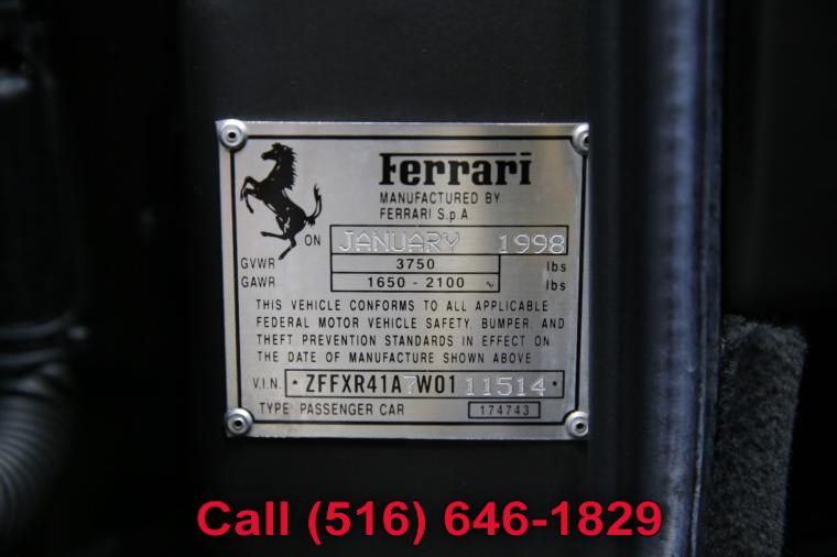For more information on this 1998 Ferrari F355, please call European Automobile Company at (516) 646-1829 or with the contact form on this page. This vehicle's vin number is ZFFXR41A7W0111514 and is recorded as being in stock at European Automobile Company at 100 Dupont Street in Plainview. See all cars from this dealership.