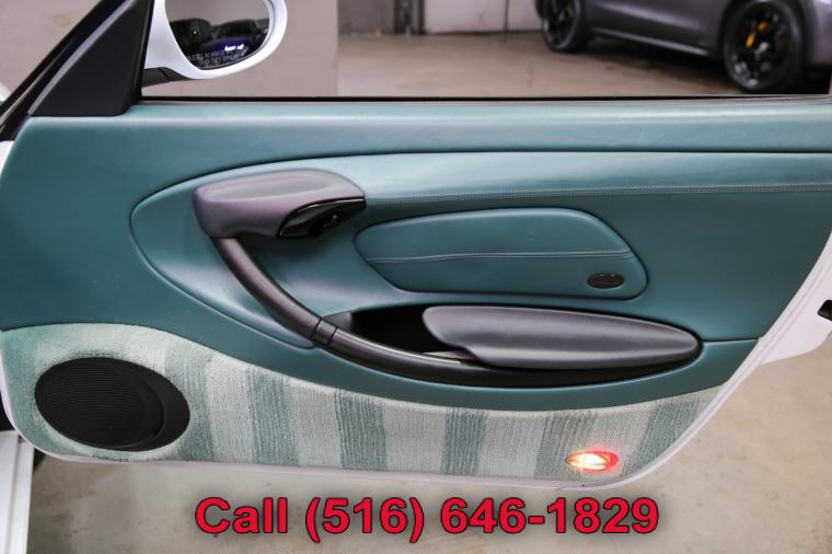 • 1998 Porsche Boxster finished with a Glacier White exterior and rare Nephrite Green leather interior. Driven just 59,484 careful miles since new. Options on this Boxster include a Tiptronic Automatic Transmission, Power Seat Package, Stainless Steel Door Entrance Panel, Large Chrome Oval Center Exhaust Pipe and much more. This Boxster just underwent a complete oil and fluid service as well as the installation of a new top within the last 20 miles and it drives even better than it looks. The 6 cylinder water cooled engine is strong and powerful and the Tiptronic automatic transmission shifts effortlessly through all of the gears. The steering is tight and precise and the brakes feel just great. All of the electronics work perfectly and the air conditioning is ice cold. This really is a fantastic Porsche to drive. The interior really unique. The SUPER RARE Nephrite Green seats are in great condition (see pictures) showing just typical wear to the seats. The dashboard is like new and even the carpets look great thanks to the floor mats that have been protecting them. The exterior is what really sets this particular Boxster apart from the rest. The Glacier White paint is in fantastic condition (see pictures) with no major scratches or dings anywhere at all. The paint is bright and shiny with plenty of luster. Add the optional alloy wheels mounted on great tires and the brand new soft top and this Boxster really does look special. The 1998 Porsche Boxster really is the utlimate roadster. It has iconic looks, great performance, a power convertible top for fun in the sun along with all of Porsche's legendary safety, craftsmanship and reliability. The only real apologies to this Boxster are a few typical nicks and chips (see pictures) and some typical interior wear (see pictures) that is to be expected on any used car. Please feel free to call me (Matt 516-646-1829) with any additional questions you may have.