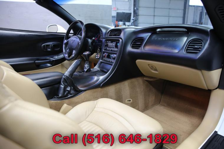 1999 Chevrolet Corvette finished with an Arctic White exterior and Light Oak leather interior. Driven just 32,444 careful miles since new. Options on this Corvette include a 6-Speed Manual Transmission, Preferred Equipment Group 1SA, Adjustable Sport Bucket Seats, Electronic Dual Zone Air Conditioning, Active Handling System, Fog Lamps, Luggage Shade, Body Side Moldings, Memory Package, Remote CD Changer, Removable Transparent Blue Tint Panel, 6 Way Power Passenger Seat, Heads Up Display, Twilight Sentinel, Power Telescopic Steering Column and much more. This Corvette just underwent a complete oil and fluid service within the last 20 miles and it drives even better than it looks. The massive 8 cylinder engine is strong and powerful and the rare 6-speed manual transmission shifts effortlessly through all of the gears. The steering is tight and precise and the brakes feel just great. All of the electronics work perfectly and the air conditioning is ice cold. This really is a fantastic Corvette to drive. The interior is stunning. The Light Oak leather sport seats are in remarkable condition (see pictures) showing just minimal wear to the seats. The dashboard is like new and even the carpets don't look or feel like they have been stepped on thanks to the factory floor mats that have been protecting them. The exterior is what really sets this particular 1999 Corvette apart from the rest. The Arctic White paint is in fantastic condition (see pictures) with no major scratches or dings anywhere at all. The paint is bright and shiny with plenty of luster. Add the optional alloy wheels mounted on great tires and this Corvette really does look special. The 1999 Chevrolet Corvette really is the ultimate American sports car. It has iconic looks, fantastic performance, along with all of Chevrolet's legendary craftsmanship and reliability. The only real apologies to this Corvette are a few typical nicks and chips (see pictures) that are to be expected on any used car. Please feel free to call me (Matt 516-646-1829) with any additional questions you may have