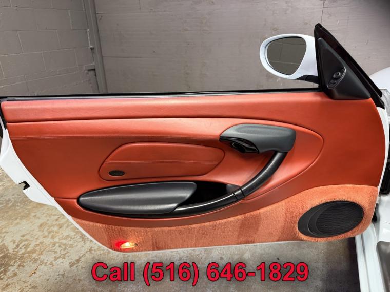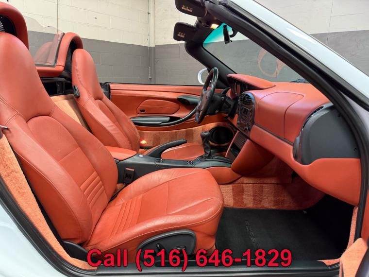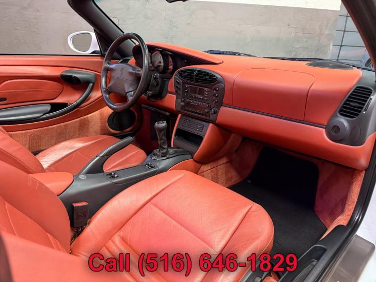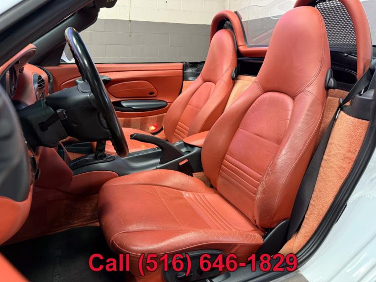 1999 Porsche Boxster finished with a Glacier White exterior and Boxster Red leather interior. Driven just 57,215 careful miles since new. Options on this Boxster include a 5-Speed Manual Transmission, Wheel Caps with Colored Crests, Center Console Compact Disc Shelf, Heated Seats, Power Seat Package, Stainless Steel Door Entrance Panel, Aluminum Colored Instrument Dials, Large Chrome Oval Center Exhaust Pipe and much more. This Boxster just underwent a complete oil and fluid service within the last 20 miles and it drives even better than it looks. The water cooled 6 cylinder engine is strong and powerful and the 5-speed manual transmission shifts effortlessly through all of the gears. The steering is tight and precise and the brakes feel just great. All of the electronics work properly and the air conditioning is ice cold. This really is a fantastic Boxster to drive. The interior is stunning. The unique Boxster Red leather seats are in excellent condition (see pictures) showing just minimal wear to the seats. The dashboard is like new and even the carpets don't look or feel like they have been stepped on thanks to the Porsche floor mats that have been protecting them. The exterior is what really sets this particular Boxster apart from the rest. The Glacier White paint is in fantastic condition (see pictures) with no major scratches or dings anywhere at all. The paint is bright and shiny with plenty of luster. Add the optional 17 inch wheels mounted on great tires and this Boxster really does look special. The 1999 Porsche Boxster really is the ultimate roadster. It has fantastic land iconic looks, great performance, a power convertible top for fun in the sun along with all of Porsche's legendary safety, craftsmanship and reliability. The only real apologies to this Boxster are a few typical nicks and chips (see pictures) that are to be expected on any used car. Please feel free to call me (Matt 516-646-1829) with any additional questions you may have.