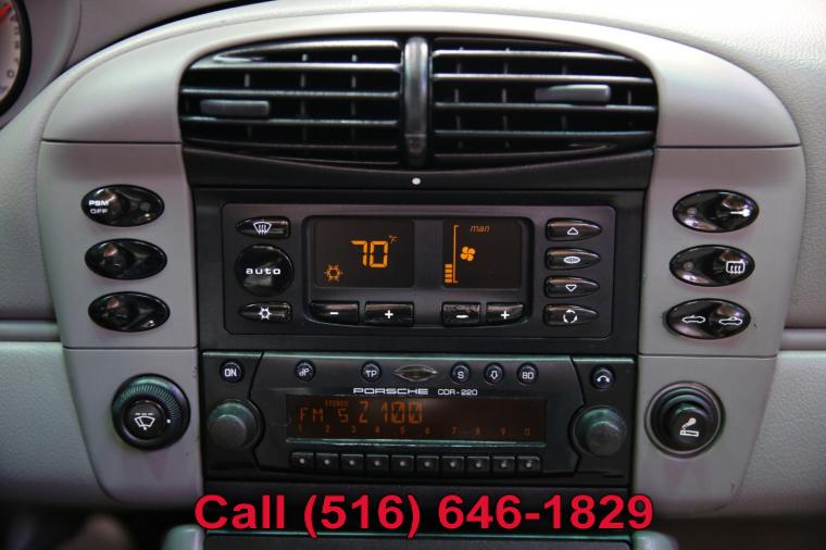 CARBON/ALUMINUM BRAKE HANDLE/SHIFT KNOB, GRAPHITE GRAY FLOOR MATS W/PORSCHE LETTERING, (4) WHEEL CAPS W/COLORED PORSCHE CREST, DUAL POWER SEAT PKG W/ELECTRIC ADJUSTMENTS, 18 RAD SPORT DESIGN WHEELS, AM/FM STEREO RADIO W/COMPACT DISC, PORSCHE STABILITY MANAGEMENT, ALUMINUM PAINTED INSTRUMENT DIALS, LEATHERETTE SEATS W/LEATHER INLAYS (STD)