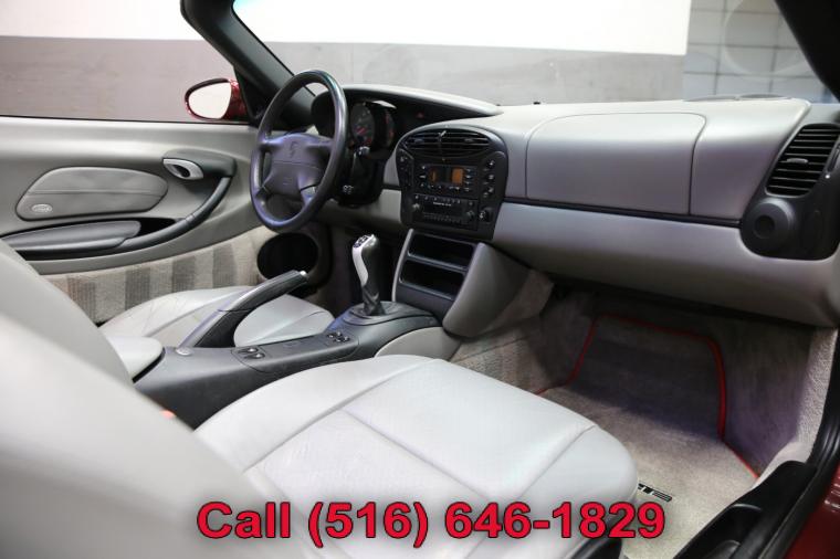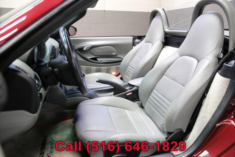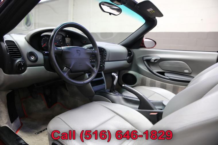2000 Porsche Boxster finished with an Arena Red Metallic exterior and Graphite Gray leather interior. Driven just 34,017 careful miles since new. Options on this Boxster include a 5-Speed Manual Transmission, Traction Control, 17 Inch Boxster Wheels and much more. This low mileage Boxster just underwent a complete oil and fluid service within the last 20 miles and it drives even better than it looks. The water cooled 6 cylinder engine is strong and powerful and the 5-speed manual transmission shifts effortlessly through all of the gears. The steering is tight and precise and the brakes feel just great. All of the electronics work perfectly and the air conditioning is ice cold. This really is a fantastic Porsche to drive. The interior is really nice. The Graphite Gray leather seats are in excellent condition (see pictures) showing just minimal wear to the seats. The dashboard is like new and even the carpets don't look or feel like they have been stepped on thanks to the Porsche floor mats that have been protecting them. The exterior is what really sets this particular Boxster apart from the rest. The rare Arena Red Metallic paint is in fantastic condition (see pictures) with no major scratches or dings anywhere at all. The paint is bright and shiny with plenty of luster. Add the optional 17 inch wheels mounted on great tires and this Porsche Boxster really does look special. The 2000 Porsche Boxster really is the ultimate roadster. It has iconic looks, fantastic performance, a power convertible top for fun in the sun along with all of Porsche's legendary safety, craftsmanship and reliability. The only real apologies to this Boxster are a few typical nicks and chips (see pictures) that are to be expected on any used car. Please feel free to call me (Matt 516-646-1829) with any additional questions you may have.