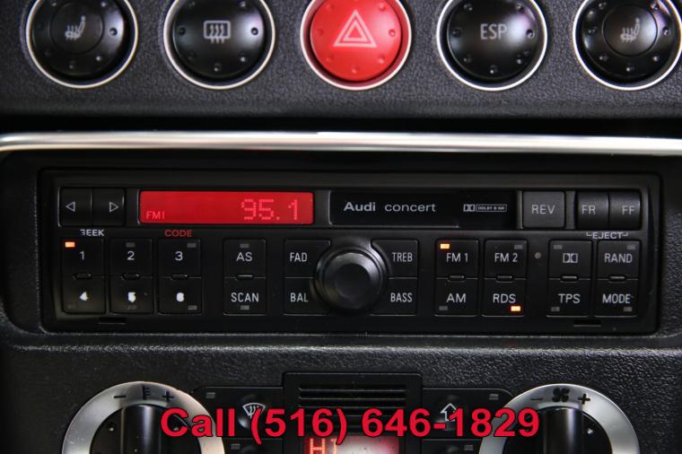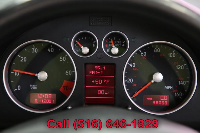 2001 Audi TT Roadster finished with a Silver Metallic exterior and Ebony leather interior. Driven just 38,068 careful miles since new. Options on this TT Roadster include the Quattro All Wheel Drive System, 6-Speed Manual Transmission, 17 Inch Wheels, Heated Seats, Bose Sound Package and much more. This TT Roadster comes with a full and complete service file from new. The turbocharged 4 cylinder engine is strong and powerful and the 6-speed manual transmission shifts effortlessly through all of the gears. The steering is tight and precise and the brakes feel just great. All of the electronics work perfectly and the air conditioning is ice cold. This really is a fantastic Audi to drive. The interior is stunning. The Ebony leather seats are in remarkable condition (see pictures) showing virtually no wear at all to any of the seats. The retro inspired dashboard is like new and even the carpets don't look or feel like they have been stepped on thanks to the Audi floor mats that have been protecting them. The exterior is what really sets this particular TT Roadster apart from the rest. The Silver Metallic paint is in fantastic condition (see pictures) with no major scratches or dings anywhere at all. The paint is bright and shiny with plenty of luster. Add the optional 17 inch alloy wheels mounted on great tires and this TT really does look special. The 2001 Audi TT really is the ultimate Roadster. It has iconic looks and performance, the Quattro all wheel drive system for all weather and road conditions along with all of Audi's legendary safety, craftsmanship and reliability. The only real apologies to this TT are a few typical nicks and chips (see pictures) and wheel scuffs (see pictures) that are to be expected on any used car. Please feel free to call me (Matt 516-646-1829) with any additional questions you may have.