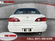 For more information on this 2001 Toyota Corolla, please call M and A Motors at (631) 450-6309 or with the contact form on this page. This vehicle's vin number is 2T1BR12E31C458328 and is recorded as being in stock at M and A Motors at 600 E Jericho Tpke in Huntington. See all cars from this dealership.