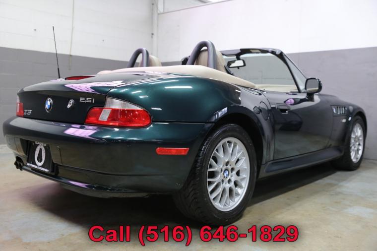 • 2002 BMW Z3 Roadster 2.5 finished with an Oxford Green Metallic exterior and Beige Classic leather interior. Driven just 33,493 careful miles since new. Options on this Z3 2.5 Roadster include an Automatic Transmission, Premium Package, Power Soft Top, Maple Wood Trim, Heated Seats and Mirrors, Sport Package, 16 Inch Cross Spoke Wheels, Harman-Kardon Sound System and much more. This Z3 Roadster has been lovingly cared for and serviced since new and it drives even better than it looks. The 2.5 liter 6 cylinder engine is strong and powerful and the automatic transmission shifts effortlessly through all of the gears. The steering is tight and precise and the brakes feel just great. All of the electronics work perfectly and the air conditioning is ice cold. This really is a fantastic BMW to drive. The interior is stunning. The Beige Classic leather seats are in remarkable condition (see pictures) showing virtually no wear at all to either seat. The dashboard is like new and even the carpets don't look or feel like they have been stepped on thanks to the BMW floor mats that have been protecting them. The exterior is what really sets this particular Z3 2.5 apart from the rest. The unique Oxford Green Metallic paint is in fantastic condition (see pictures) with no major scratches or dings anywhere at all. The paint is bright and shiny with plenty of luster. Add the Beige soft top and the 16 inch cross spoke wheels mounted on great tires and this BMW really does look special. The 2002 BMW Z3 2.5 really is the ultimate Roadster. It has fantastic and timeless looks, great performance, a power convertible top for fun in the sun along with all of BMW's legendary safety, craftsmanship and reliability. The only real apologies to this Z3 are a few typical nicks and chips (see pictures) that are to be expected on any used car. Please feel free to call me (Matt 516-646-1829) with any additional questions you may have.