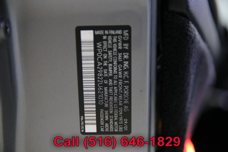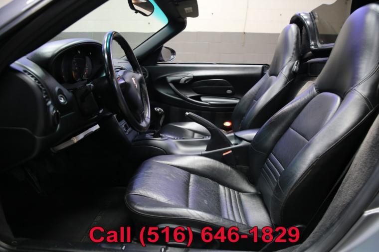 2002 Porsche Boxster finished with a Seal Grey Metallic exterior and Black leather interior. Driven 74,729 careful miles since new. Options on this Boxster include a 5-Speed Manual Transmission, Leather Seats, 17 Inch Gloss Black Wheels, Red Brake Calipers, Heated Seats, Compact Disc Shelf and much more. This 2002 Boxster has had an LN Engineering IMS Bearing replacement and it drives even better than it looks. The water cooled 6 cylinder engine is strong and powerful and the 5-speed manual transmission shifts effortlessly through all of the gears. The steering is tight and precise and the brakes feel just great. All of the electronics work perfectly and the air conditioning is ice cold. This really is a fantastic Boxster to drive. The interior is very nice. The Black leather seats are in very good condition (see pictures) showing just typical wear to the seats. The dashboard is like new and even the carpets don't look or feel like they have been stepped on thanks to the Porsche floor mats that have been protecting them. The exterior is what really sets this particular Boxster apart from the rest. The Seal Grey Metallic paint is in fantastic condition (see pictures) with no major scratches or dings anywhere at all. The paint is bright and shiny with plenty of luster. Add the optional 17 inch gloss black wheels mounted on great tires and this Boxster really does look special. The 2002 Porsche Boxster really is the ultimate roadster. It has iconic looks, great performance, a power convertible top for fun in the sun along with all of Porsche's legendary safety, craftsmanship and reliability. The only real apologies to this Boxster are a few typical nicks and chips (see pictures) and a bit of interior seat wear (see pictures) that is to be expected on any used car. Please feel free to call me (Matt 516-646-1829) with any additional questions you may have.