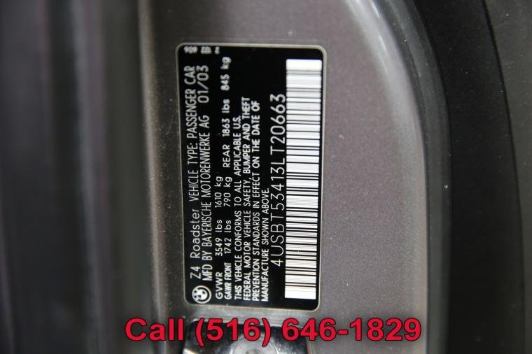 For more information on this 2003 BMW Z4, please call European Automobile Company at (516) 646-1829 or with the contact form on this page. This vehicle's vin number is 4USBT53413LT20663 and is recorded as being in stock at European Automobile Company at 100 Dupont Street in Plainview. See all cars from this dealership.