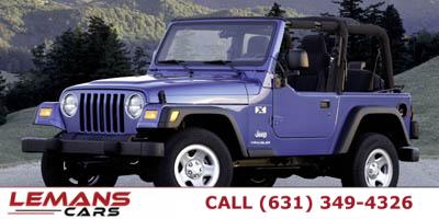 • Adjustable Steering Wheel, AM/FM Stereo, Power Outlet, Bucket Seats, CD Player, Cloth Seats, Driver Air Bag, Four Wheel Drive, Front Disc/Rear Drum Brakes, Conventional Spare Tire, Gasoline Fuel, Intermittent Wipers, Pass-Through Rear Seat, Passenger Air Bag, Power Steering, Rear Bench Seat, Rollover Protection Bars, Straight 6 Cylinder Engine, Tires - Front All-Terrain, Tires - Rear All-Terrain, Variable Speed Intermittent Wipers, Easy folding soft top, Fender flares, Fold away mirrors, Side & rear plastic windows, Variable intermittent windshield wipers, (4) speakers, AM/FM stereo w/CD player-inc: changer control, Aux 12-volt pwr outlet, Cargo tie down loops, Cloth reclining high-back front bucket seats, Courtesy/underhood lamps, Easy access tip/slide driver seat, Easy access tip/slide passenger seat, Fixed long mast antenna, Folding rear seat, Front/rear seat, wheelhouse, cargo area carpeting, Full length floor console, Glove box w/lock, Instrument panel ventilation, Sport bar w/full padding, Tilt steering column, (5) 15" x 7.0" full-face steel wheels, 117-amp alternator, 19 gallon fuel tank, 3.07 axle ratio, 4.0L SMPI I6 "Power Tech" engine, 4450# GVWR, 6-speed manual transmission, 600-CCA maintenance free battery, Command-Trac part-time 4WD system, Dana 30/186MM front axle, Dana M35/194MM rear axle, Front stabilizer bar, Full size spare tire w/outside carrier, Gas-charged shock absorbers, Next generation engine controller, P215/75R15 all-terrain RBL "Wrangler" tires, Pwr front disc/rear drum brakes, Pwr recirculating ball steering, Skid plates-inc: transfer case, fuel tank, Driver & front passenger next generation airbags