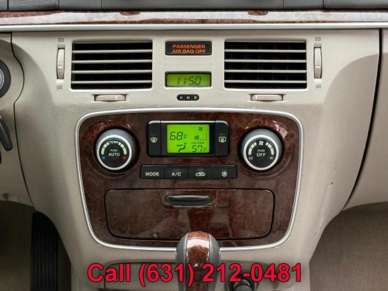 ABS, 4-Wheel Disc Brakes, 5-Speed A/T, A/C, A/T, Adjustable Steering Wheel, Security System, Aluminum Wheels, AM/FM Stereo, Transmission w/Dual Shift Mode, Automatic Headlights, Power Outlet, Brake Assist, Bucket Seats, CD Player, Child Safety Locks, Cruise Control, Driver Air Bag, Driver Illuminated Vanity Mirror, Driver Adjustable Lumbar, Driver Vanity Mirror, Stability Control, Fog Lamps, Front Reading Lamps, Front Wheel Drive, Gasoline Fuel, Heated Mirrors, Intermittent Wipers, Keyless Entry, Leather Steering Wheel, MP3 Player, Passenger Air Bag, Passenger Air Bag Sensor, Passenger Illuminated Visor Mirror, Passenger Vanity Mirror, Power Door Locks, Power Mirror(s), Power Steering, Power Windows, Rear Head Air Bag, Front Side Air Bag, Steering Wheel Audio Controls, Tires - Front Performance, Tires - Rear Performance, Traction Control, Trip Computer, V6 Cylinder Engine, Variable Speed Intermittent Wipers, Woodgrain Interior Trim, Auto headlight on/off control, Body-color heated pwr mirrors w/timers, Chrome bar-style grille, Chrome door handles, Chrome window trim, Fog lights, Solar glass control, Speed sensitive variable intermittent front wipers, (4) assist grips, Air conditioning w/cabin air filter, AM/FM/MP3 audio system w/CD player-inc: (6) speakers, Automatic temp control air conditioning w/cabin air filter, air quality system (AQS), Center console mounted 12V pwr outlet, Cruise control, Dual sunvisors w/illuminated vanity mirrors, Dual tier console w/fixed armrest, storage, (2) cupholders, Dual tier console w/sliding armrest, storage, (2) cupholders, Electrochromic rearview mirror, Front heated seating w/pwr driver seat, Full door trim w/cloth inserts, Full door trim w/simulated leather inserts, HomeLink universal garage door opener, Illuminated ignition key surround, In-glass antenna, Leather seating surfaces, Leather wrapped tilt steering wheel w/audio controls, Leather wrapped tilt/telescoping steering wheel w/audio controls, Lighting-inc: front map lights, glovebox, cargo, ashtray, window switches, Locking glovebox, Metalgrain/woodgrain accents, Multi-adjustable front bucket seats w/manual driver lumbar, Multi-adjustable heated front bucket seats w/8-way pwr driver, manual driver lumbar, Overhead console w/sunglasses holder, Premium cloth seating surfaces, Premium cut-pile carpeting, Premium door sill scuff plates, Pwr door locks, Pwr windows w/driver auto up/down, pinch protection, lockout, Rear center armrest w/(2) cupholders, Rear coat hangers, Remote fuel/hood release, Remote keyless entry system w/alarm, Tire pressure monitoring system (TPMS), Trip computer, XM satellite radio, 17" 6.5" 5-spoke alloy wheels, 3.3L V6 24-valve engine, 4-wheel anti-lock brakes (ABS), 4-wheel disc brakes, 5-speed Shiftronic automatic transmission w/OD, Chrome tipped dual exhaust, Continuous variable valve timing (CVVT), Electronic brakeforce distribution (EBD), Engine speed sensing pwr steering, Front wheel drive, Lock-up torque converter, P225/50R17 all-season tires, Traction control system (TCS) w/electronic stability control (ESC), 3-point seatbelts for all seating positions, front seat belt pretensioners, 4-wheel anti-lock brakes (ABS), Body-side reinforcements, Childproof rear door locks, Driver/front passenger advanced airbags, Driver/front passenger seat-mounted side-impact airbags, Electronic brakeforce distribution (EBD), Energy-absorbing steering column, Front seat active head restraints, Front/rear crumple zones, Hood buckling creases, Lower anchors & upper tether anchors (LATCH), Panic brake assist, Rear side curtain airbags, Traction control system (TCS) w/electronic stability control (ESC)