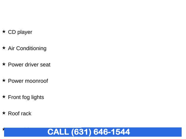 6 Speakers, AM/FM radio, CD player, Air Conditioning, Automatic temperature control, Front dual zone A/C, Rear window defroster, Power driver seat, Power steering, Power windows, Remote keyless entry, Four wheel independent suspension, Speed-sensing steering, 4-Wheel Disc Brakes, ABS brakes, Anti-whiplash front head restraints, Dual front impact airbags, Dual front side impact airbags, Front anti-roll bar, Occupant sensing airbag, Overhead airbag, Rear anti-roll bar, Power moonroof, Front fog lights, Panic alarm, Security system, Speed control, Heated door mirrors, Power door mirrors, Roof rack, Spoiler, Driver door bin, Driver vanity mirror, Front reading lights, Illuminated entry, Leather steering wheel, Outside temperature display, Passenger vanity mirror, Tachometer, Tilt steering wheel, Trip computer, Front Bucket Seats, Heated front seats, Split folding rear seat, Passenger door bin, Alloy wheels, Rear window wiper, Variably intermittent wipers