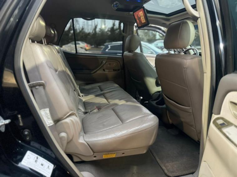 ABS, 4-Wheel Disc Brakes, 5-Speed A/T, 8 Cylinder Engine, A/C, A/T, 3rd Row Seat, Adjustable Steering Wheel, AM/FM Stereo, Automatic Headlights, Power Outlet, Brake Assist, Bucket Seats, CD Player, Child Safety Locks, Climate Control, Cruise Control, Driver Air Bag, Driver Vanity Mirror, Multi-Zone A/C, Stability Control, Four Wheel Drive, Front Reading Lamps, Conventional Spare Tire, Gasoline Fuel, Intermittent Wipers, Pass-Through Rear Seat, Passenger Air Bag, Passenger Air Bag On/Off Switch, Passenger Air Bag Sensor, Passenger Vanity Mirror, Power Door Locks, Power Mirror(s), Power Driver Seat, Power Passenger Seat, Power Steering, Power Windows, Privacy Glass, Rear Bench Seat, Rear Defrost, Rear Head Air Bag, Front Side Air Bag, Front Head Air Bag, Traction Control, Variable Speed Intermittent Wipers, Engine Immobilizer, Color-keyed body side moldings w/chrome inserts, Color-keyed bumpers, Color-keyed door handles, Color-keyed grille, Color-keyed overfenders, Color-keyed pwr mirrors, Mudguards, Multi-reflector headlamps w/auto off, Rear intermittent wiper, Rear quarter & tailgate privacy glass, Washer-linked variable intermittent wipers, (10) cupholders, 3-in-1 AM/FM stereo w/cassette/CD-inc: (6) speakers, 50/50 split fold-down reclining 3rd row bench seat w/tumble/slide feature, remove functions, adjustable headrests, 60/40 split fold-down 2nd row bench seat w/tumble feature, adjustable headrests, center armrest, Anti-theft system w/engine immobilizer, Cargo area 12-volt auxiliary pwr outlet, Cargo area grocery bag hooks, Center console-inc: note pad holder, dual cupholders, dual 12V aux pwr outlets, covered armrest storage compartment, Cruise control, Door map pockets & courtesy lamps, Dual sun visors w/vanity mirrors, sliding extensions, Dual zone front & rear digital auto climate control, Fabric-trimmed seats & doors, In-dash 4-wheel drive transfer lever, In-glass antenna, Maplights, Pwr door locks, Pwr front bucket seats w/adjustable headrests, Pwr rear window w/defogger, Pwr windows w/front 1-touch auto up/down, jam control, Remote hood & fuel filler door releases, Tilt steering wheel w/cruise controls, 130-amp alternator, 16" x 7.0" styled steel wheels, 4.7L DOHC EFI 32-valve V8 i-Force VVT-i engine, 5-link live axle rear suspension w/coil-springs, 5-speed ECT-i automatic transmission w/OD, 6, 700# GVWR, Anti-lock brake system (ABS) w/brake assist, Electronic brakeforce distribution (EBD), Engine speed-sensing pwr rack & pinion steering, Front & rear stabilizer bars, low-pressure gas-filled shock absorbers, Full size spare tire, Independent double-wishbone front suspension w/coil-springs, Multi-mode 4-wheel drive w/locking center differential, P265/70R16 mud & snow tires, Pwr 4-wheel ventilated disc brakes w/load-sensing proportioning valve, Traction control (TRAC), Vehicle stability control (VSC), 2nd/3rd row child restraint system (CRS) tether anchors bracket & ISO-FIX anchors, 3-point ALR/ELR seatbelts in all seating positions, Anti-lock brake system (ABS) w/brake assist, Child protector rear door locks, Driver & front passenger airbags w/advanced airbag system, occupant classification sensor, Driver & front passenger seat-mounted side airbags, Electronic brakeforce distribution (EBD), Front & 2nd row roll-sensing side curtain airbags w/cutoff switch, Front seat belt force limiters & pretensioners, Side-impact door beams, Traction control (TRAC), Vehicle stability control (VSC)