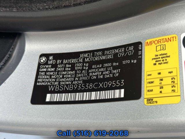 For more information on this 2008 BMW M5, please call Certified Luxury Motors at (516) 619-2068 or with the contact form on this page. This vehicle's vin number is WBSNB93538CX09553 and is recorded as being in stock at Certified Luxury Motors at 215 Northern Blvd in Great Neck. See all cars from this dealership.