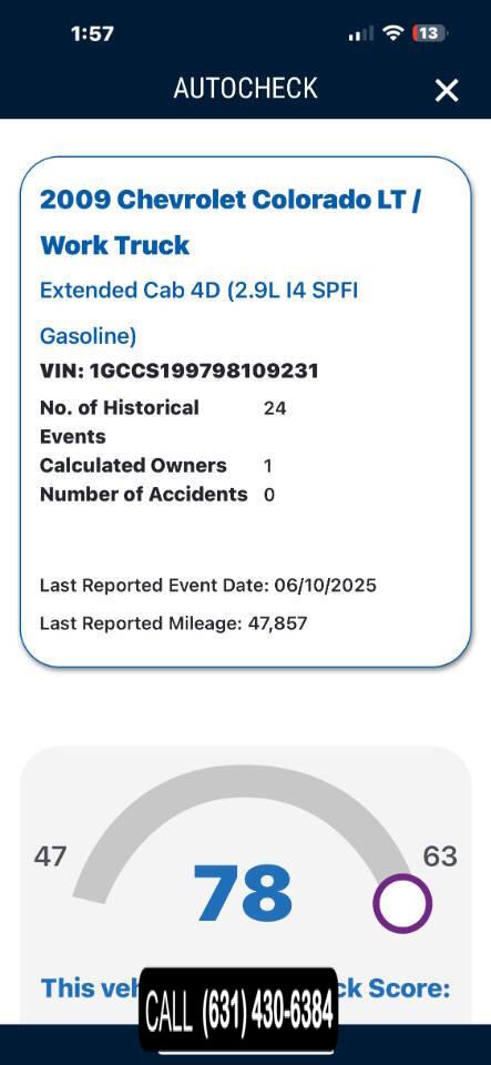 For more information on this 2009 Chevrolet Colorado, please call King Auto Sales at (631) 430-6384 or with the contact form on this page. This vehicle's vin number is 1GCCS199798109231 and is recorded as being in stock at King Auto Sales at 3304 Rt 112 in Medford. See all cars from this dealership.