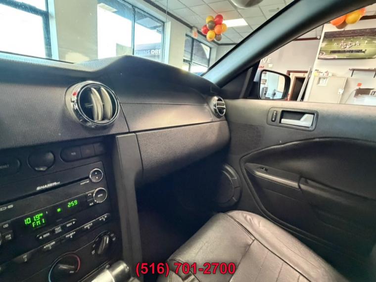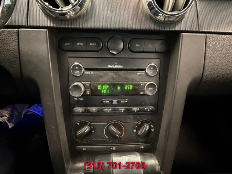 ABS, 4-Wheel Disc Brakes, 8 Cylinder Engine, A/C, Adjustable Steering Wheel, Aluminum Wheels, AM/FM Stereo, Auxiliary Audio Input, Power Outlet, Bucket Seats, CD Player, Temporary Spare Tire, Convertible Soft Top, Cruise Control, Driver Air Bag, Driver Adjustable Lumbar, Driver Vanity Mirror, Fog Lamps, Gasoline Fuel, Intermittent Wipers, Keyless Entry, Pass-Through Rear Seat, Passenger Air Bag, Passenger Air Bag Sensor, Passenger Vanity Mirror, Power Door Locks, Power Mirror(s), Power Driver Seat, Power Steering, Power Windows, Rear Bench Seat, Rear Defrost, Rear Wheel Drive, Front Side Air Bag, Tire Pressure Monitor, Tires - Front Performance, Tires - Rear Performance, Traction Control, Variable Speed Intermittent Wipers, Engine Immobilizer, 17" premium painted cast aluminum wheels, Color-keyed rocker panel moldings, Complex reflector halogen headlamps, Convertible soft top, Dual pwr exterior mirrors, Front fog lamps, Mini spare tire/wheel, P235/55ZR17 performance all-season BSW tires, Rear spoiler, Variable intermittent windshield wipers, "Mustang" logo cloth seat trim, "Stampeding Horse" logo cloth seat trim, (2) cupholders, (2) pwr points, (4) gauge instrument cluster w/air registers, 6-way pwr adjustable driver seat w/pwr lumbar & 2-way adjustable head restraints, Aberdeen embossed leather-trimmed seat trim, Air conditioning, Ambient lighting, Bright shift knob, Center console -inc: armrest, storage bin, Dark charcoal door panels, Driver footrest, Dual visor vanity mirrors, Front color-keyed floor mats w/driver retention hook, Front door map pockets, Front sport bucket seats, Illuminated entry, Leather-wrapped tilt steering wheel w/cruise controls & satin spokes, Lighted bezel, Manual 2-way adjustable passenger seat, Message center, Polished aluminum instrument panel applique, Pwr door locks, Pwr windows -inc: 1-touch up/down front windows, Rear 50/50 split fold-down seat, Rear window defroster, Remote keyless entry, Satin scuff plates, Satin vent covers & door latches, SecuriLock passive anti-theft system (PATS), Tilt steering wheel w/cruise controls, 4.6L SOHC 24-valve V8 engine, 5-speed manual transmission, Pwr steering, Pwr vented 4-wheel disc brakes, Rear wheel drive, Stainless steel dual exhaust system, 3-point active safety belts in all seating positions, Anti-lock brakes (ABS) w/traction control, Dual-stage driver/front passenger airbags w/crash severity sensor, occupant sensors, Front seat Belt Minder, LATCH (lower anchors & tethers for children) system on rear outboard seats, Seat mounted side-impact airbags for driver & front passenger, Side intrusion door beams, Tire pressure monitoring system