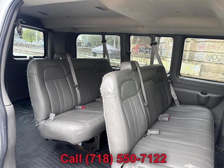 Engine- Vortec 5.3L V8 SFI (301 hp [224.4 kW] @ 5200 rpm- 325 lb-ft of torque [438.8 N-m] @ 4500 rpm) (Standard on **13406 models.), Rear axle- 3.42 ratio (Standard on ** 13406 models only. Reference the Engine/Axle page for availability.), Rear-wheel drive, Battery- 600 cold-cranking amps- maintenance-free with rundown protection and retained accessory power, Alternator- 125 amps (Standard on **13406. Not available with (C69) rear air conditioning.), Frame- ladder-type, Suspension- front independent with coil springs and stabilizer bar (Standard and only available on *G***06 models.), Suspension- rear hypoid drive axle with multi-leaf springs, GVWR- 7300 lbs. (3311 kg) (Standard on **13406 models. Reference the Engine/Axle page for availability.), Steering- power, Brakes- 4-wheel antilock- 4-wheel disc, Fuel tank capacity- mid-frame and approximately 31 gallons (117.3L), Exhaust- aluminized stainless-steel muffler and tailpipe, Tire- spare P245/70R17 all-season- blackwall (Requires **13406 models standard tire.), Body- standard, Bumpers- front and rear painted Black with step-pad (Not available when ordered with (V37) front and rear chrome bumpers.), Grille- Black composite with single rectangular halogen headlamps, Headlamps- halogen, Mirrors- outside manual- Black, Glass- Solar-Ray deep-tinted (all windows except light-tinted glass on windshield and driver- and front passenger-side glass), Glass- swing-out side door windows, Glass- swing-out rear cargo door windows, Glass- full-body window package (Includes (A18) swing-out rear cargo door glass and (A19) swing-out side door window glass.), Wipers- front intermittent wet-arm with pulse washers, License plate kit- front, Door- swing-out passenger-side- 60/40 split, Console- engine cover with open storage bin, Cup holders- 3 on engine console cover, Floor covering- full-length Black rubberized-vinyl, Steering wheel steel sleeve column with theft-deterrent locking feature- Black, Instrumentation- analog with speedometer- odometer with trip odometer- fuel level- voltmeter- engine temperature and oil pressure, Oil life monitor, Warning tones- headlamp on and key-in-ignition, Theft-deterrent system- vehicle- PASS-Key III, Defogger- front and side windows, Mirror- inside rearview manual day/night, Headliner- cloth, Assist handle- front passenger, Lighting- interior with 2 dome lights defeat switch and door handle-activated switches, StabiliTrak- traction assistance and vehicle stability enhancement system, Brake/transmission shift interlock for automatic transmissions, Door beams- steel-side, Daytime Running Lamps, Air bags- frontal- driver and right-front passenger (Includes passenger-side air bag deactivation switch for models with (C6P) 8600 lbs. (3901 kg) GVWR and above. Never place a rear-facing infant restraint in the front seat of any vehicle equipped with an active frontal air bag. Always use safety belts and the correct child restraints for your childs age and size- even in vehicles equipped with air bags. Children are safer when properly secured in a rear seat. See the vehicles Owners Manual and child safety seat instructions for more safety information.), Air bags- head/side-curtain provides coverage for first 3-rows only. Enhanced-technology glass is provided for the fourth and fifth rows when equipped with 12- and 15-passenger seating. (Head curtain side air bags are designed to help reduce the risk of head and neck injuries to front and rear seat occupants on the near side of certain side-impact collisions. Always use safety belts and the correct child restraints for your childs age and size- even in vehicles equipped with air bags. Children are safer when properly secured in a rear seat. See the vehicles Owners Manual and child safety seat instructions for more safety information.), Child seat anchors all three passenger rear seats have four anchors and two tethers