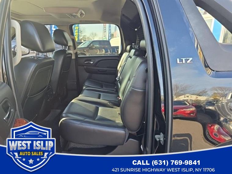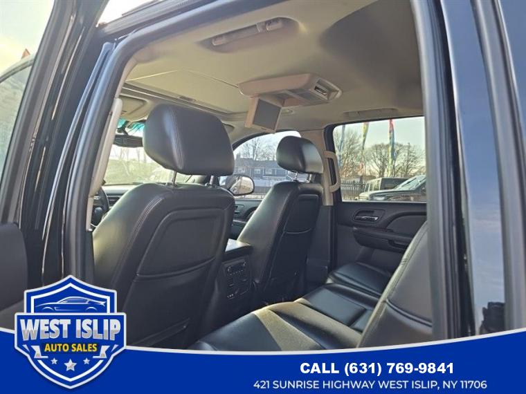 ABS, 4-Wheel Disc Brakes, 6-Speed A/T, 8 Cylinder Engine, A/C, A/T, Adjustable Pedals, Adjustable Steering Wheel, Air Suspension, AM/FM Stereo, Automatic Headlights, Auxiliary Audio Input, Power Outlet, Back-Up Camera, Bucket Seats, Cargo Shade, CD Player, Climate Control, Cooled Front Seat(s), Cruise Control, Daytime Running Lights, Driver Air Bag, Driver Illuminated Vanity Mirror, Driver Adjustable Lumbar, Driver Vanity Mirror, Multi-Zone A/C, Auto-Dimming Rearview Mirror, Stability Control, Flex Fuel Capability, Fog Lamps, Four Wheel Drive, Floor Mats, Front Reading Lamps, Tow Hooks, Conventional Spare Tire, Heated Front Seat(s), Heated Mirrors, Integrated Turn Signal Mirrors, Keyless Entry, Leather Seats, Leather Steering Wheel, Locking/Limited Slip Differential, Luggage Rack, MP3 Capability, Navigation from Telematics, Navigation System, Telematics, Pass-Through Rear Seat, Passenger Air Bag, Passenger Air Bag Sensor, Passenger Illuminated Visor Mirror, Passenger Adjustable Lumbar, Passenger Vanity Mirror, Power Door Locks, Power Mirror(s), Power Driver Seat, Power Folding Mirrors, Power Passenger Seat, Power Steering, Power Windows, Premium Sound System, Privacy Glass, Rear Bench Seat, Rear Defrost, Rear Head Air Bag, Rear Parking Aid, Rear Reading Lamps, Rear Seat Audio Controls, Remote Engine Start, Requires Subscription, Running Boards/Side Steps, Satellite Radio, Seat Memory, Front Side Air Bag, Front Head Air Bag, Steering Wheel Audio Controls, Tire Pressure Monitor, Traction Control, Tow Hitch, Universal Garage Door Opener, Immobilizer, Bluetooth Connection, Woodgrain Interior Trim, Assist steps, Dark Charcoal, Cargo cover, rear rigid, 3-piece composite, stowable onboard, Door handles, Chrome, Fascia, front color-keyed, Fascia, rear color-keyed, Fog lamps, front, halogen, Glass, Solar-Ray deep tinted (all windows except light tinted glass on windshield, driver and front passenger), Grille insert, bright chrome, Headlamps, dual halogen composite with automatic exterior lamp control and flash-to-pass feature, Luggage rack side rails, roof-mounted, Black, Midgate, foldable door between cargo box and cab with a removable and stowable rear window, Mirrors, outside heated power-adjustable, power-folding and driver-side auto-dimming with integrated turn signal indicators, ground illumination and curb-tilt (Mirror caps are bright chrome), Moldings, bodyside, color-keyed (Unique design with chrome strip included on LTZ), Pickup box mat, Black rubber, Recovery hooks, front, frame-mounted (Standard with 4WD Models only), Storage box, integrated top box with locks and lights, Tire, spare P265/70R17, Tires, P275/55R20, all-season, blackwall, Wheel, 17" (43.2 cm) full-size, steel spare, Wheels, 4-20" x 8.5" (50.8 cm x 21.6 cm) polished aluminum, Air conditioning, dual-zone automatic climate control with individual climate settings for driver and right-front passenger. Includes rear air conditioning outlets in center console when bucket seats are ordered, Assist handles, front passenger and rear outboard, Console, floor with storage area, cup holders and integrated second row audio controls (Includes woodgrain covered forward storage.), Cruise control, electronic with set and resume speed, Defogger, rear-window electric, Door locks, power programmable with lockout protection, Floor covering, color-keyed carpeting with (B58) carpeted floor mats, Headliner, cloth, Instrumentation, analog with speedometer, fuel level, voltmeter, engine temperature, oil pressure and tachometer, Lighting, interior with dome lamp, driver-and passenger-side door switch with delayed entry feature, cargo light, door handle or Remote Keyless Entry-activated illuminated entry and map lights in front and second seat positions, Mirror, inside rearview auto-dimming, Pedals, power-adjustable for accelerator and brake, Power outlets 2 instrument panel-mounted auxiliary with covers, 12-volt (On vehicles equipped with (A95) front bucket seats or (AN3) front leather appointed buckets seats, also includes 1 outlet inside center console and 1 in rear of console), Remote vehicle starter system includes Remote Keyless Entry, Seats, front bucket with Perforated leather-appointed seating, (AG1) 12-way power driver and (AG2) front passenger seat adjusters, power lumbar control, heated and cooled seats, 2-position driver memory (including lumbar), adjustable head restraints, storage pockets and floor console, Seats, heated and cooled driver and front passenger, Seats, rear 60/40 split-bench, 3-passenger, flip and fold with child seat top tether anchor, Steering column, Tilt-Wheel, adjustable with brake/transmission shift interlock, Steering wheel controls, mounted audio and cruise controls, Steering wheel, leather-wrapped, Theft-deterrent system, vehicle, PASS-Key III, Universal Home Remote includes garage door opener, programmable, Visors driver and front passenger and illuminated vanity mirrors, padded with cloth trim, extends on rod, Warning tones headlamp on, key-in-ignition, driver and right-front passenger safety belt unfasten and turn signal on, Windows, power with driver and front passenger Express-Down and lockout features, Alternator, 145 amps, Automatic air level control, Battery, heavy-duty 600 cold-cranking amps, maintenance-free with rundown protection and retained accessory power, Brakes, 4-wheel antilock, 4-wheel disc, Differential, heavy-duty locking rear, Engine, Vortec 5.3L V8 SFI FlexFuel with Active Fuel Management, capable of running on unleaded or up to 85% ethanol (with gas - 320 hp [238.6 kW] @ 5400 rpm, 335 lb-ft of torque [452.2 N-m] @ 4000 rpm, with E85 ethanol - 326 hp [243.1 kW] @ 5300 rpm, 348 lb-ft of torque [469.8 N-m] @ 4400 rpm), iron block, Four wheel drive, GVWR, 7200 lbs. (3266 kg) (Requires CK10936 models), Key, single, 2-sided, Rear axle, 3.08 ratio (Not available with (K5L) heavy-duty trailering package), Steering, power, Suspension, front coil-over-shock with stabilizer bar, Suspension, rear m