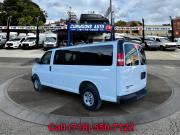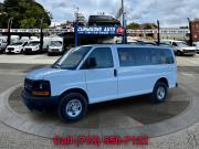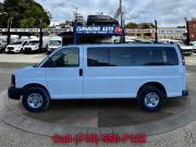 Engine- Vortec 6.0L V8 SFI FlexFuel (323 hp [240.8 kW] @ 4600 rpm- 373 lb-ft of torque [503.6 N-m] @ 4400 rpm) (Standard on *G23406- *G33406 or *G33706 models. Includes external engine oil cooler. Reference the Engine/Axle page for availability. Horsepower and torque may vary based on whether (FE9) Federal emissions requirements or (YF5) California emissions requirements are ordered), Rear axle- 3.42 ratio (Standard on **13406- *G23*06- and *G33*06 models. Reference the Engine/Axle page for availability.), Rear-wheel drive, Transmission oil cooler- external (Standard on *G23406- *G33406 or *G33706 models. Requires (L96) Vortec 6.0L V8 SFI FlexFuel engine.), Battery- 600 cold-cranking amps- maintenance-free with rundown protection and retained accessory power, Alternator- 105 amps (Not available with (C69) rear air conditioning or **13406 models.), Frame- ladder-type, Suspension- front independent with coil springs and stabilizer bar (Standard and only available on *G***06 models.), Suspension- rear hypoid drive axle with multi-leaf springs, GVWR- 9600 lbs. (4354 kg) (Standard on *G33*06 models. Reference the Engine/Axle page for availability.), Steering- power, Brakes- 4-wheel antilock- 4-wheel disc, Fuel tank capacity- mid-frame and approximately 31 gallons (117.3L), Exhaust- aluminized stainless-steel muffler and tailpipe, Tires- front LT245/75R16E all-season- blackwall (Standard on *G23406- *G33406 and *G33706 models.), Tires- rear LT245/75R16E all-season- blackwall (Standard on *G23406- *G33406 and *G33706 models.), Tire- spare LT245/75R16E all-season- blackwall located at rear underbody of vehicle (Standard on *G23406- *G33406 and *G33706 models.), Body- standard, Bumpers- front and rear painted Black with step-pad (Not available when ordered with (V37) front and rear chrome bumpers.), Grille- Black composite with single rectangular halogen headlamps, Headlamps- halogen, Mirrors- outside manual- Black, Glass- Solar-Ray deep-tinted (all windows except light-tinted glass on windshield and driver- and front passenger-side glass), Glass- swing-out side door windows, Glass- swing-out rear cargo door windows, Glass- enhanced-technology- rearmost side windows. 3-layer special glass is designed to help reduce the risk of ejection during a crash (Standard on *G23406- *G33406- and *G33706 models with 12- and 15- passenger seating. Not available with 8-passenger seating.), Glass- full-body window package (Includes (A18) swing-out rear cargo door window glass and (A19) swing-out side door window glass.), Wipers- front intermittent wet-arm with pulse washers, License plate kit- front, Door- swing-out passenger-side- 60/40 split, Console- engine cover with open storage bin, Cup holders- 3 on engine console cover, Floor covering- full-length Black rubberized-vinyl, Steering wheel steel sleeve column with theft-deterrent locking feature- Black, Instrumentation- analog with speedometer- odometer with trip odometer- fuel level- voltmeter- engine temperature and oil pressure, Oil life monitor, Warning tones- headlamp on and key-in-ignition, Theft-deterrent system- vehicle- PASS-Key III, Defogger- front and side windows, Mirror- inside rearview manual day/night, Headliner- cloth, Visors- driver and front passenger- cloth- padded (Not available on *G33706 models. Not available with (TR9) auxiliary lighting or (C69) rear air conditioning or (DAA) driver and front passenger vinyl visors or (DH6) driver and front passenger visors padded with cloth trim.), Assist handle- front passenger, Lighting- interior with 2 dome lights defeat switch and door handle-activated switches, StabiliTrak- traction assistance and vehicle stability enhancement system, Brake/transmission shift interlock for automatic transmissions, Door beams- steel-side, Daytime Running Lamps, Air bags- frontal- driver and right-front passenger (Includes passenger-side air bag deactivation switch for models with (C6P) 8600 lbs. (3901 kg) GVWR and above. Never place a rear-facing infant restraint in the front seat of any vehicle equipped with an active frontal air bag. Always use safety belts and the correct child restraints for your child's age and size- even in vehicles equipped with air bags. Children are safer when properly secured in a rear seat. See the vehicle's Owner's Manual and child safety seat instructions for more safety information.), Air bags- head/side-curtain provides coverage for first 3-rows only. Enhanced-technology glass is provided for the fourth and fifth rows when equipped with 12- and 15-passenger seating. (Head curtain side air bags are designed to help reduce the risk of head and neck injuries to front and rear seat occupants on the near side of certain side-impact collisions. Always use safety belts and the correct child restraints for your child's age and size- even in vehicles equipped with air bags. Children are safer when properly secured in a rear seat. See the vehicle's Owner's Manual and child safety seat instructions for more safety information.), Child seat anchors all three passenger rear seats have four anchors and two tethers