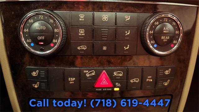 • 3.70 Axle Ratio, 19" 5-Spoke Alloy Wheels, Heated Front Bucket Seats, MB-Tex Upholstery, AM/FM In-Dash 6-Disc DVD/CD Changer, 4-Wheel Disc Brakes, Premium audio system: COMAND®, Emergency communication system: mbrace, Front Center Armrest w/Storage, Compass, Speed-Sensitive Wipers, 8 Speakers, Child-Seat-Sensing Airbag, Weather band radio, Variably intermittent wipers, Turn signal indicator mirrors, Trip computer, Traction control, Tilt steering wheel, Telescoping steering wheel, Steering wheel mounted audio controls, Split folding rear seat, Speed-sensing steering, Speed control, Security system, Roof rack: rails only, Remote keyless entry, Rear window wiper, Rear window defroster, Rear side impact airbag, Rear seat center armrest, Rear reading lights, Rear fog lights, Rear anti-roll bar, Rain sensing wipers, Power windows, Power steering, Power passenger seat, Power moonroof, Power driver seat, Power door mirrors, Power adjustable front head restraints, Passenger vanity mirror, Passenger door bin, Panic alarm, Overhead airbag, Outside temperature display, Occupant sensing airbag, Low tire pressure warning, Knee airbag, Illuminated entry, Heated front seats, Heated door mirrors, Genuine wood door panel insert, Genuine wood dashboard insert, Genuine wood console insert, Garage door transmitter: Homelink, Fully automatic headlights, Front reading lights, Front fog lights, Front dual zone A/C, Front anti-roll bar, Four wheel independent suspension, Dual front side impact airbags, Dual front impact airbags, Driver vanity mirror, Driver door bin, Delay-off headlights, DVD-Audio, CD player, Bumpers: body-color, Brake assist, Bodyside moldings, Automatic temperature control, Auto-leveling suspension, Anti-whiplash front head restraints, Alloy wheels, Adjustable head restraints: driver and passenger w/tilt, AM/FM radio, ABS brakes, 3rd row seats: split-bench, Tachometer, Spoiler, Front Bucket Seats, Electronic Stability Control, Air Conditioning