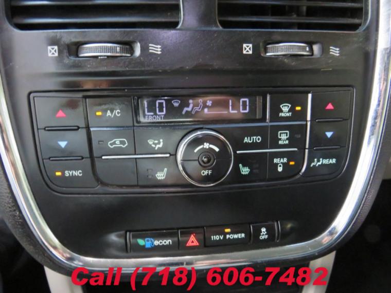 ABS, 4-Wheel Disc Brakes, 6-Speed A/T, A/C, A/T, 3rd Row Seat, Adjustable Pedals, Adjustable Steering Wheel, Security System, Aluminum Wheels, AM/FM Stereo, Transmission w/Dual Shift Mode, Auxiliary Audio Input, Power Outlet, Back-Up Camera, Bucket Seats, CD Player, Child Safety Locks, Climate Control, Temporary Spare Tire, Cruise Control, Driver Air Bag, Driver Illuminated Vanity Mirror, Driver Adjustable Lumbar, Driver Vanity Mirror, Multi-Zone A/C, Auto-Dimming Rearview Mirror, Stability Control, Flex Fuel Capability, Fog Lamps, Fourth Passenger Door, Floor Mats, Front Wheel Drive, Gasoline Fuel, Hard Disk Drive Media Storage, Heated Front Seat(s), Heated Mirrors, Integrated Turn Signal Mirrors, Intermittent Wipers, Keyless Entry, Leather Seats, Leather Steering Wheel, MP3 Player, Pass-Through Rear Seat, Passenger Air Bag, Passenger Air Bag Sensor, Passenger Illuminated Visor Mirror, Passenger Vanity Mirror, Power Door Locks, Power Mirror(s), Power Driver Seat, Power Fourth Passenger Door, Power Liftgate, Power Passenger Seat, Power Steering, Power Third Passenger Door, Power Windows, Privacy Glass, Rear Bucket Seats, Rear A/C, Rear Defrost, Rear Head Air Bag, Rear Reading Lamps, Remote Engine Start, Remote Trunk Release, Satellite Radio, Front Side Air Bag, Front Head Air Bag, Steering Wheel Audio Controls, Third Passenger Door, Tires - Front All-Season, Tires - Rear All-Season, Traction Control, Universal Garage Door Opener, V6 Cylinder Engine, Variable Speed Intermittent Wipers, Engine Immobilizer, Woodgrain Interior Trim, 17" x 6.5" aluminum wheels, Automatic headlamps, Black side rails w/integrated crossbars, Body-color door handles, Body-color sill applique, Bright belt molding, Bright body-side molding, Bright grille, Chrome fold-away heated pwr mirrors -inc: driver auto dimming mirror, integrated turn signals, Compact spare tire, Fog lamps, Front/rear body-color fascias, Headlamp off time delay, Integrated roof rail crossbars, LH pwr sliding door, Liftgate flood lamp, P225/65R17 all-season BSW tires, Pwr liftgate, Quad halogen headlamps, Rain-sensing windshield wipers, Rear window wiper w/washer, RH pwr sliding door, Smartbeam headlamps, Sunscreen glass, Tire carrier winch, Variable intermittent windshield wipers, 115V pwr outlet, 120 MPH primary speedometer, 12V auxiliary pwr outlets, 2nd & 3rd row window shades, 2nd row pwr windows, 2nd row Stow N' Go buckets, 3rd row 60/40 fold-in-floor bench seat, Active headrests, Air filtering, Analog clock, Automatic air conditioning w/3-zone temp control, Cupholders w/overhead illumination, Dark maple/silver instrument panel bezel, Door courtesy lights, Door trim panel w/dark maple accents, Driver pwr lumbar adjust, Dual glove boxes, Easy clean floor mats, Floor & cargo area carpet, Front seat removable center console, Front/rear 12V DC pwr outlets, Heated front seats, Illuminated front door storage, Instrument cluster w/tachometer, Instrument panel, Interior assist handles, Interior observation mirror, Keyless entry w/immobilizer, Leather trimmed low-back bucket seats, Leather-wrapped shift knob, Leather-wrapped steering wheel, Left rear quarter trim storage bin, Low washer fluid warning signal, Lower instrument panel cubby bin, Overhead ambient surround lighting, Overhead console, Overhead storage bins, Pwr adjustable pedals, Pwr door locks, Pwr driver/front passenger seats, Pwr quarter vent windows, Pwr windows w/front one-touch, Rear air conditioning w/heater, Rear seatback grocery bag hooks, Rear swiveling reading/courtesy lamps, Rear view auto dimming mirror, Rear window defroster, Rechargeable portable light, Remote start system, Satin silver instrument panel bezel center stack, Security alarm, Single rear overhead console system, Sliding door alert, Speed control, Steering wheel mounted audio controls, Tilt/telescoping steering column, Tip start, Universal garage door opener, Vehicle info center, Visors w/illuminated vanity mirrors, 160 amp alternator, 3.6L 24-valve VVT V6 flex fuel engine, 6-speed automatic transmission w/Autostick, 700 amp maintenance-free battery, Anti-lock 4-wheel disc brakes, Engine oil cooler, Front wheel drive, Independent MacPherson strut front suspension, Pwr rack & pinion steering, Twist beam axle rear suspension, All row side curtain air bags, Blind spot & cross path detection, Child seat anchor system (LATCH ready), Driver & front passenger advanced multistage air bags, Driver knee-bolster air bag, Dual note horn, Electronic stability program, ParkSense rear park assist, ParkView rear back-up camera, Rear child safety door locks, Supplemental front seat side air bags, Tire pressure monitoring display -inc: CORA tire pressure monitoring sensor