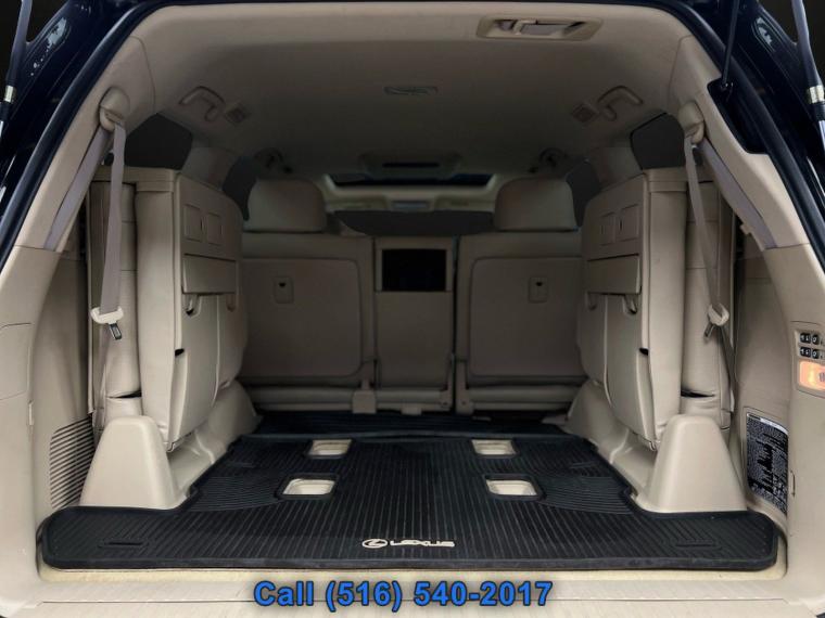 Sunroof/Moonroof, Navigation System, Leather Seats, Heated Seats, Entertainment System, Bluetooth, Backup Camera, Seating capacity: 8, Driver seat direction: Driver seat with 10-way directional controls, Driver lumbar: Driver seat with 2-way power lumbar, Passenger seat direction: Front passenger seat with 8-way directional controls, Front passenger lumbar: Front passenger seat with 2-way power lumbar, Front head restraints: Height adjustable front seat head restraints, Front head restraint control: Manual front seat head restraint control, Front anti-whiplash head restraints: Anti-whiplash front seat head restraints, Armrests front driver: Driver seat armrest, Second-row seats fixed or removable: Fixed second-row seats, Folding second-row seats: 40-20-40 folding second-row seats, Reclining second-row seats: Manual reclining second-row seats, Second-row seats: Split-bench second-row seat, Second-row seat folding position: Tumble forward second-row seat, Fore and aft second-row seat: Second-row seats with power fore and aft, Rear head restraints: Height adjustable rear seat head restraints, Rear head restraint control: Manual rear seat head restraint control, Rear head restraint control: 3 rear seat head restraints, Third-row seat fixed or removable: Fixed third-row seats, Third-row seats folding: 50-50 folding third-row passenger seat, Third-row seat facing: Front facing third-row seat, Third-row head restraints: Height adjustable third-row head restraints, Third-row head restraint control: Manual third-row head restraint control, Front seatback upholstery: Leatherette front seatback upholstery, Door trim insert: Leather door trim insert, Headliner material: Cloth headliner material, Headliner coverage: Full headliner coverage, Floor covering: Full carpet floor covering, Gearshifter material: Leather and genuine wood gear shifter material, Interior accents: Chrome interior accents, Rear seatback upholstery: Leatherette rear seatback upholstery, Third-row seatback upholstery: Leatherette third-row seatback upholstery, Number of memory settings: 3 memory settings, Climate control: Automatic climate control, Air conditioning: Yes, Dual-zone front climate control: Dual-zone front climate control, Rear climate control: Rear climate control system with separate controls, Cabin air filter: Cabin air filter, Rear under seat ducts: Rear under seat climate control ducts, Auxiliary rear heater: Auxiliary rear heater, Dual-zone rear climate control: Dual-zone rear climate control, Rear headliner/pillar ducts: Rear headliner/pillar climate control ducts, Rear console climate control ducts: Rear console climate control ducts, Steering wheel material: Leather and genuine wood steering wheel, Steering wheel tilt: Power tilting steering wheel, Steering wheel telescopic: Power telescopic steering wheel, Tinted windows: Deep tinted windows, Laminated window: Laminated side window glass, Third-row head restraint number: 3 third-row head restraints, Bench seats: Third-row split-bench seat, Armrests rear: Second-row center armrest, Armrests rear storage: Second-row center armrest storage, Armrests front passenger: Front passenger seat armrest, Power driver seat controls: Driver seat power reclining lumbar support, cushion extension, cushion tilt, fore/aft control and height adjustable control, Power passenger seat controls: Passenger seat power reclining lumbar support, cushion tilt, fore/aft control and height adjustable control, Floor coverage: Full floor coverage, Passenger doors rear left: Conventional left rear passenger door, Rear cargo door: Power liftgate/tailgate rear cargo door, Heated door mirrors: Heated driver and passenger side door mirrors, Door mirror with tilt-down in reverse: Power driver and passenger door mirrors with tilt down in reverse, Passenger doors rear right: Conventional right rear passenger door, Visor driver expandable coverage: Driver visor with expandable coverage, Visor driver mirror: Driver visor mirror, Visor illuminated driver mirror: Illuminated driver visor mirror, Visor passenger expandable coverage: Passenger visor with expandable coverage, Visor passenger mirror: Passenger visor mirror, Visor illuminated passenger mirror: Illuminated passenger visor mirror, Rearview mirror: Auto-dimming rear view mirror, Beverage holders: Front beverage holders, Rear seat direction: Front facing rear seat, Memory settings: Memory settings include: door mirrors and steering wheel, Floor console: Full floor console, Floor console storage: Covered floor console storage, Overhead console: Mini overhead console, Overhead console storage: Overhead console storage, Glove box: Illuminated locking glove box, Seatback storage pockets: 2 seatback storage pockets, Door bins front: Driver and passenger door bins, Door bins rear: Rear door bins, Cargo floor type: Carpet cargo area floor, Trunk lid trim: Plastic trunk lid trim, Cargo tie downs: Cargo area tie downs, Cargo light: Cargo area light, Concealed cargo storage: Cargo area concealed storage, Steering mounted audio control: Steering wheel mounted audio controls, Cruise control: Cruise control with steering wheel mounted controls, Cargo access: Power cargo area access release, Fuel door: Manual fuel door release, Trunk hatch: Trunk/hatch auto-latching, Driver foot rest: Driver foot rest, Accessory power: Retained accessory power, Garage door opener: HomeLink garage door opener, 12V power outlets: 4 12V power outlets, Ashtray: Ashtray, Cigarette lighter: Front cigarette lighter, Interior 120V AC power outlets: 1 interior 120V AC power outlet, Door locks: Power door locks with 2 stage unlocking, Keyfob keyless entry: Keyfob keyless entry, All-in-one key: All-in-one remote fob and ignition key, Auto door locks: Auto-locking doors, Fob engine controls: SmartAccess with hands-free access and push button start, Valet key: Valet key, Auto-dimming door mirror driver: Auto-dimming driver side mirror, Tailgate control: Tailgate/power door lock, Keyfob 