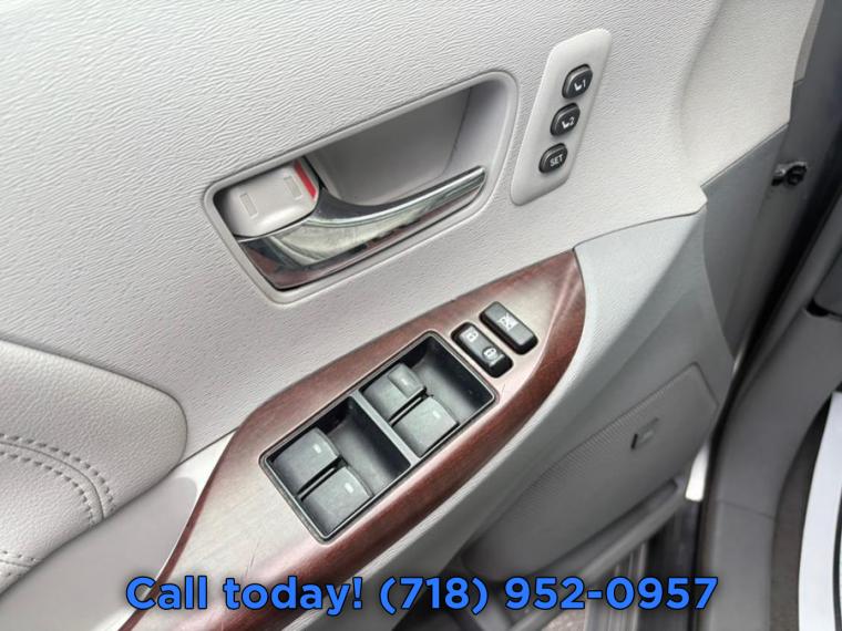 ABS, 4-Wheel Disc Brakes, 6-Speed A/T, A/C, A/T, 3rd Row Seat, Adjustable Steering Wheel, Security System, Aluminum Wheels, AM/FM Stereo, Auxiliary Audio Input, Power Outlet, Back-Up Camera, Brake Assist, Bucket Seats, CD Player, Child Safety Locks, Climate Control, Temporary Spare Tire, Cruise Control, Daytime Running Lights, Driver Air Bag, Driver Illuminated Vanity Mirror, Driver Adjustable Lumbar, Driver Vanity Mirror, Multi-Zone A/C, Auto-Dimming Rearview Mirror, Stability Control, Fog Lamps, Fourth Passenger Door, Front Reading Lamps, Front Wheel Drive, Gasoline Fuel, Heated Front Seat(s), Heated Mirrors, Intermittent Wipers, Keyless Entry, Knee Air Bag, Leather Seats, Leather Steering Wheel, MP3 Player, Passenger Air Bag, Passenger Air Bag Sensor, Passenger Illuminated Visor Mirror, Passenger Vanity Mirror, Power Door Locks, Power Mirror(s), Power Driver Seat, Power Fourth Passenger Door, Power Liftgate, Power Steering, Power Third Passenger Door, Sun/Moonroof, Power Windows, Privacy Glass, Rear Bucket Seats, Rear A/C, Rear Side Air Bag, Rear Defrost, Rear Head Air Bag, Rear Spoiler, Remote Trunk Release, Requires Subscription, Satellite Radio, Front Side Air Bag, Front Head Air Bag, Steering Wheel Audio Controls, Generic Sun/Moonroof, Third Passenger Door, Tire Pressure Monitor, Traction Control, Universal Garage Door Opener, V6 Cylinder Engine, Variable Speed Intermittent Wipers, Engine Immobilizer, Bluetooth Connection, 17" 7-spoke machine-finished alloy wheels, 18" 10-spoke machined alloy wheels, Auto-off halogen headlamps, Chrome style grille surround, Chrome-accented door handles, Color-keyed bumpers, Color-keyed door handles, Color-keyed heated pwr mirrors, Color-keyed pwr folding heated reverse-linked pwr mirrors w/integrated turn signals -inc: mirror memory, auto-dimming mirrors, puddle lamps, Color-keyed rear spoiler, Dual pwr sliding doors, Gray metallic front grille, Integrated wide-angle front fog lamps, LED tail lamps, P235/55R18 all-season tires, P235/60R17 all-season tires, Pwr tilt/slide moonroof w/sunshade, Rear bumper protector, Rear intermittent wiper, Rear moon roof w/slide feature, Rear privacy glass, Roof rails, Satin chrome front grille, Temporary spare tire, Washer-linked variable intermittent wipers -inc: de-icer grid, (10) cup holders, (12) cup holders, (3) 12V pwr outlets, (4) grocery hooks, 3.5" multi-information display w/customizable settings -inc: backup monitor, clock, outside temp, air cond indicator, open door indicator, 4-way manual passenger captains chair, 4-way pwr passenger captains chair, 60/40 split & stow third row seat -inc: one-motion stow, 7-passenger seating, 8-passenger seating, 8-way pwr drivers captains seat w/pwr lumbar, 8-way pwr drivers captains seat w/pwr lumbar -inc: seat memory, Anti-theft alarm w/engine immobilizer, Auto access seat, Auto-dimming rearview mirror w/integrated compass, Bi-level glove compartment w/locking lower level, Cargo area storage compartment for second row center seat, Cargo area storage compartment w/side panel storage, Center floor tray, Cruise control, Driver/front passenger active headrests, Dual adjustable sun visors w/illuminated vanity mirrors, Front seat back pockets, Front/rear door map pockets w/integrated bottle holders, HD rear window defogger w/timer, Heated driver/front passenger seats w/temperature control, HomeLink universal transceiver garage door opener, Leather-wrapped & wood grain trimmed steering wheel, Leather-wrapped steering wheel, Manual second & third row sunshades, Optitron meter cluster -inc: speedometer, tachometer, fuel gauge, LCD odometer, twin trip meters, coolant temp, shift sequence, eco driving indicator, Overhead console w/map lights -inc: moonroof controls, side/rear door controls, door light setting, dome light control, conversation mirror, sunglasses holder, microphone, Overhead console w/map lights -inc: Safety Connect controls, front/rear moonroof controls, side/rear door controls, door light setting, dome light control, roof illumination, conversation mirror, sunglasses holder, microphone, Pwr 60/40 split & stow third row seat, Pwr door windows w/auto up/down feature -inc: jam protection, Pwr rear quarter windows, Remote two-stage unlocking keyless entry w/panic button -inc: pwr sliding side/rear door controls, Removable 40/20/40 second row captains chairs -inc: tip up & long slide features, stowable center seat section, Removable second row captains chairs -inc: lounge seating, long side features, Removable second row captains chairs -inc: tip up & long slide features, Retained accessory pwr, Retractable assist grips for outboard seats, Shift-activated pwr door locks -inc: anti-lock out feature, Sliding center console box -inc: illuminated storage, (2) illuminated front cup holders, (2) rear cup holders, Smart key system w/remote illuminated entry, Steering wheel mounted controls -inc: audio, telephone & voice command controls, Textured leather seat trim, Tilt/telescopic steering column, Tri-zone automatic air conditioning w/rear controls -inc: air filter, Two-tone leather seat trim, Wood grain-style fixed front center console -inc: illuminated storage, (2) illuminated front cup holders, (2) rear cup holders, 3.5L DOHC 24-valve V6 engine, 6-speed automatic transmission w/OD & intelligence (ECT-i), Battery saver, Electric pwr assisted rack & pinion steering, Front wheel drive, Front/rear gas-filled shocks, Front/rear stabilizer bars, Independent MacPherson strut front suspension, Push button ignition, Pwr 4-wheel vented front & solid rear disc brakes, Torsion beam rear suspension w/coil springs, 3-point seatbelts in all seating positions w/automatic locking retractors (ALR) -inc: driver emergency locking retractor (ELR), front pretensioners w/force limiters, front seatbelt warning system, first & second row adjustable anchors, 4-wheel anti-lock brake system, Child safety door locks, Daytime running lights, Driver knee airbag, Driver/front passenger advanced airb