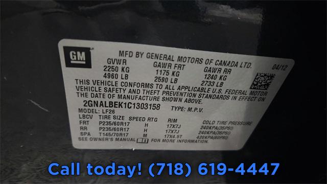 For more information on this 2012 Chevrolet Equinox, please call Major World at (718) 619-4447 or with the contact form on this page. This vehicle's vin number is 2GNALBEK1C1303158 and is recorded as being in stock at Major World at 43-40 Northern Blvd in Long Island City. See all cars from this dealership.