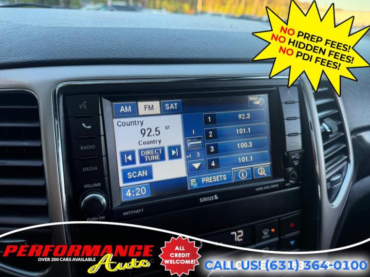 RARE! Altitude and Laredo E Packages! Low Miles! Only 56K Miles! Pano Sunroof! Media Center 430N! and More! This was one of the most optioned Grand Cherokees available in 2012! 100% Clean Carfax! Runs and Drives Great! Come in for a Test Drive! REMEMBER THE PERFORMANCE AUTO DIFFERENCE - NO PREP FEES! NO HIDDEN FEES! AND OUR PRICES DO NOT NEED TO REFLECT A TRADE OR DOWN PAYMENT! OUR PRICES ARE REAL! DON'T BE SCAMMED BY FINE PRINT! Government fees like Sales Tax, Inspection, DMV Fees and the State Limited $175 Doc processing fee are the ONLY additional fees allowed. Shame on any dealer who advertises a vehicle for a price that you CANNOT buy it for. Just be aware, if you cannot trust a dealer with their advertised price, should you trust them after that??? Shame on third party advertiser websites where consumers go to shop for cars and these sites allow this to happen and then honor these deceptive dealers with badges for "Great Deals" when after you add all their fees in, its NOT a great deal anymore. As per the AG in NY, It is against the law to advertise a vehicle for a price and then have hidden fees or down payments not included in the price. And now please beware of the another scam -- Dealers offering a "promotional price" only if you finance the vehicle with their lenders! This is also illegal and deceptive. You also do NOT need to finance to get our prices! A price should be exactly that - A PRICE! Performance Auto has been selling quality pre-owned automobiles since October 2000. 20-30% of our sales are REPEAT BUSINESS! You will feel no pressure when you enter our facility and meet one of our friendly sales representatives. All of the vehicles that we sell have to be NYS Inspected! As a Licensed New York State Dealer (Facility #7095633), we are required to provide you with a Clear Lien Free Title. As a Certified Plate program dealer, we also have the ability to issue new license plates or transfer your existing plates to your new vehicle. Please be aware of other "dealers" that sell vehicles using "out of state" licenses to avoid inspecting vehicles!