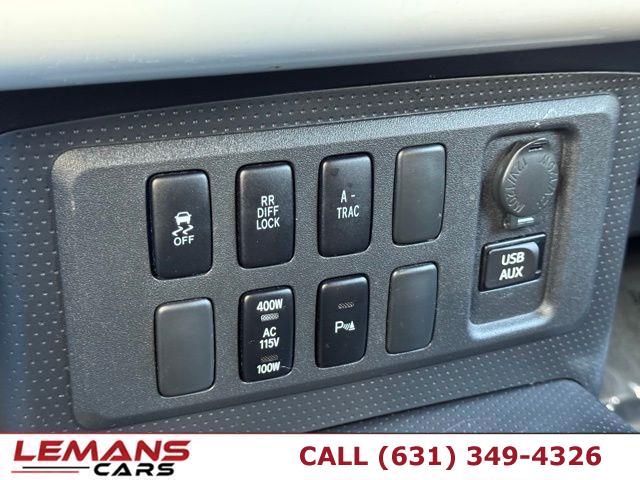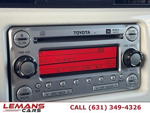 ABS, 4-Wheel Disc Brakes, A/C, Adjustable Steering Wheel, AM/FM Stereo, Automatic Headlights, Auxiliary Audio Input, Brake Assist, Bucket Seats, CD Player, Child Safety Locks, Cloth Seats, Driver Air Bag, Driver Vanity Mirror, Stability Control, Emergency Trunk Release, Four Wheel Drive, Front Reading Lamps, Conventional Spare Tire, Gasoline Fuel, Intermittent Wipers, MP3 Capability, Pass-Through Rear Seat, Passenger Air Bag, Passenger Air Bag Sensor, Passenger Vanity Mirror, Power Door Locks, Power Steering, Power Windows, Rear Bench Seat, Rear Defrost, Rear Head Air Bag, Requires Subscription, Satellite Radio, Front Side Air Bag, Front Head Air Bag, Steering Wheel Audio Controls, Tire Pressure Monitor, Tires - Front On/Off Road, Tires - Rear On/Off Road, Traction Control, V6 Cylinder Engine, Immobilizer, Bluetooth Connection, 17" black steel wheels, Black bumpers w/metallic silver trim, Black overfenders w/integrated mud flaps, Full size spare tire mounted on rear door, Intermittent windshield wipers, Lift-up rear glass hatch, Metallic silver door handles, Metallic silver mirrors, Multi-reflector halogen auto-off headlamps, P265/70R17 tires, (4) assist handles, (4) cupholders & (2) bottle holders, (4) door-mounted map pockets, 3-spoke tilt steering wheel -inc: steering wheel audio & Bluetooth controls, 60/40 split 2nd row seats -inc: removable bottom cushions, folding outboard headrests, Air conditioning -inc: air filter, 2nd row vents, Analog instrumentation -inc: speedometer, tachometer, fuel, coolant temp, voltmeters, Body color instrument panel trim, Cargo area tie-down hooks, Digital clock, Driver & front passenger active headrests, Dual sun visors w/vanity mirrors, Engine immobilizer, Flat dash panels -inc: pipe-like structure, silver trim, HD all-weather flooring & rear deck, Map lamps, Pwr door locks, Pwr windows, Rear window defogger w/timer, Water resistant fabric bucket seats -inc: 8-way driver seat, 4-way front passenger manual seat, passenger seat back pocket, 4-link rear suspension -inc: lateral rod, coil springs, 4.0L DOHC SFI 24-valve V6 engine w/VVT-i, 5-speed automatic electronically controlled transmission w/intelligence (ECT-i), 5570# GVWR, 6-speed manual transmission w/OD, Electronically controlled locking rear differential, Front & rear stabilizer bar, Full-time 4-wheel drive, High-mounted double-wishbone independent front suspension, Part-time 4-wheel drive, Pwr 4-wheel solid front & ventilated rear disc brakes, Skid plates -inc: engine, front suspension, fuel tank, transfer case, Variable pwr rack & pinion steering, 1st & 2nd row side curtain airbags w/rollover sensor, 3-point seatbelts -inc: emergency locking (ELR) driver seat, automatic/emergency locking retractor (ALR/ELR)front passenger & rear seats, Driver & front passenger dual stage airbags -inc: front passenger occupant classification, Driver & front passenger seat-mounted side airbags, Driver & front passenger seatbelt pretensioners w/force limiters, Emergency trunk release, Front & rear adjustable outboard seatbelt anchors, Lower anchors & tethers for children (LATCH) system, Rear child safety locks, Side-impact door beams, Star Safety System -inc: vehicle stability control (VSC), traction control (TRAC), anti-lock brake system (ABS), electronic brake-force distribution (EBD), brake assist (BA), Smart Stop Technology (SST), Tire pressure monitoring system (TPMS)