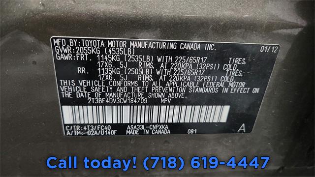 • VIN: 2T3BF4DV3CW184709