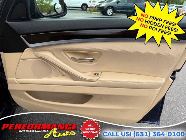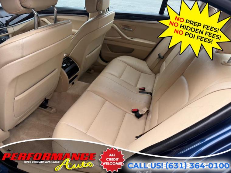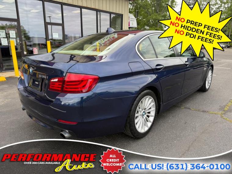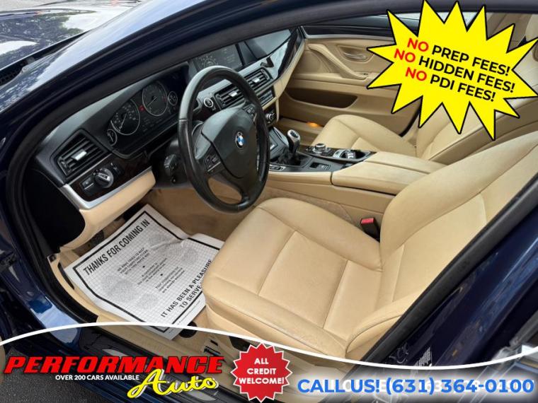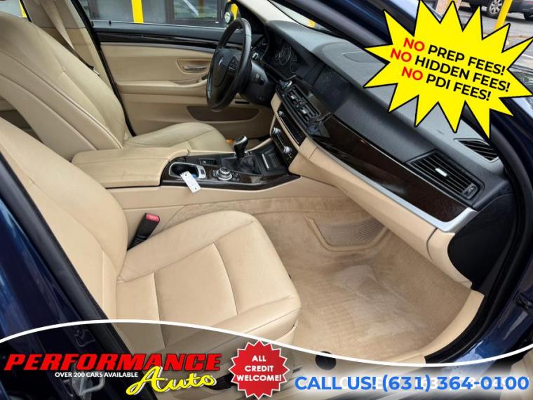 100% Clean Carfax! 6 Speed Manual! Rare! 2013 BMW 535i! Navigation! Heated Seats! Power Sunroof! Deep Sea Blue Metallic with Venetian Beige Leather Interior! Runs and Drives Great! Come in for a Test Drive! REMEMBER THE PERFORMANCE AUTO DIFFERENCE - NO PREP FEES! NO HIDDEN FEES! AND OUR PRICES DO NOT NEED TO REFLECT A TRADE OR DOWN PAYMENT! OUR PRICES ARE REAL! DON'T BE SCAMMED BY FINE PRINT! Government fees like Sales Tax, Inspection, DMV Fees and the State Limited $175 Doc processing fee are the ONLY additional fees allowed. Shame on any dealer who advertises a vehicle for a price that you CANNOT buy it for. Just be aware, if you cannot trust a dealer with their advertised price, should you trust them after that??? Shame on third party advertiser websites where consumers go to shop for cars and these sites allow this to happen and then honor these deceptive dealers with badges for "Great Deals" when after you add all their fees in, its NOT a great deal anymore. As per the AG in NY, It is against the law to advertise a vehicle for a price and then have hidden fees or down payments not included in the price. And now please beware of the another scam -- Dealers offering a "promotional price" only if you finance the vehicle with their lenders! This is also illegal and deceptive. You also do NOT need to finance to get our prices! A price should be exactly that - A PRICE! Performance Auto has been selling quality pre-owned automobiles since October 2000. 20-30% of our sales are REPEAT BUSINESS! You will feel no pressure when you enter our facility and meet one of our friendly sales representatives. All of the vehicles that we sell have to be NYS Inspected! As a Licensed New York State Dealer (Facility #7095633), we are required to provide you with a Clear Lien Free Title. As a Certified Plate program dealer, we also have the ability to issue new license plates or transfer your existing plates to your new vehicle. Please be aware of other "dealers" that sell vehicles using "out of state" licenses to avoid inspecting vehicles!