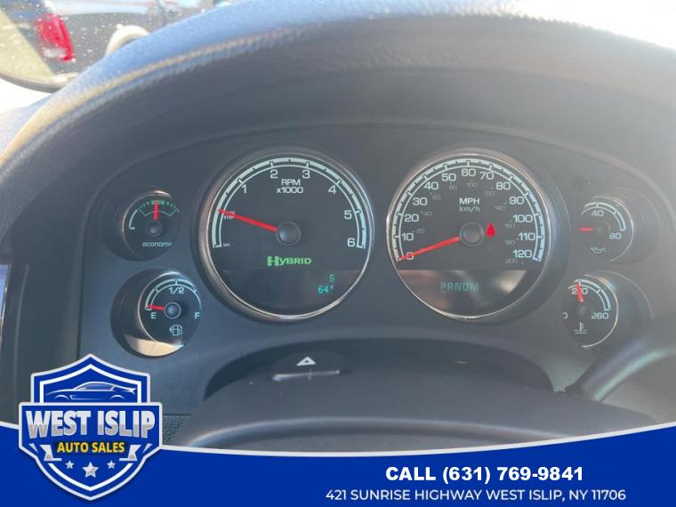 4-Speed A/T, ABS, 4-Wheel Disc Brakes, 8 Cylinder Engine, A/C, A/T, Active Suspension, 3rd Row Seat, Adjustable Pedals, Adjustable Steering Wheel, Air Suspension, AM/FM Stereo, Automatic Headlights, Auxiliary Audio Input, Power Outlet, Back-Up Camera, Blind Spot Monitor, Bucket Seats, CD Player, Chrome Wheels, Climate Control, Cooled Front Seat(s), Cruise Control, Driver Air Bag, Driver Illuminated Vanity Mirror, Driver Adjustable Lumbar, Driver Vanity Mirror, Multi-Zone A/C, Auto-Dimming Rearview Mirror, Stability Control, Fog Lamps, Four Wheel Drive, Floor Mats, Front Reading Lamps, Tow Hooks, Hard Disk Drive Media Storage, Heated Front Seat(s), Heated Mirrors, Heated Rear Seat(s), Gas/Electric Hybrid, Integrated Turn Signal Mirrors, Intermittent Wipers, Keyless Entry, Leather Seats, Leather Steering Wheel, Locking/Limited Slip Differential, Luggage Rack, Mirror Memory, MP3 Player, Navigation from Telematics, Navigation System, Telematics, Pass-Through Rear Seat, Passenger Air Bag, Passenger Air Bag Sensor, Passenger Illuminated Visor Mirror, Passenger Adjustable Lumbar, Passenger Vanity Mirror, Power Door Locks, Power Mirror(s), Power Driver Seat, Power Folding Mirrors, Power Liftgate, Power Passenger Seat, Power Steering, Power Windows, Premium Sound System, Privacy Glass, Rear A/C, Rear Bench Seat, Rear Defrost, Rear Head Air Bag, Rear Parking Aid, Rear Reading Lamps, Rear Seat Audio Controls, Remote Engine Start, Remote Trunk Release, Running Boards/Side Steps, Satellite Radio, Seat Memory, Front Side Air Bag, Front Head Air Bag, Smart Device Integration, Steering Wheel Audio Controls, Tire Pressure Monitor, Tires - Front Performance, Tires - Rear Performance, Traction Control, Tow Hitch, Transmission Overdrive Switch, Universal Garage Door Opener, Engine Immobilizer, Bluetooth Connection, Assist steps, Black with chrome insert, Fascia, front color-keyed, Fascia, rear color-keyed, Fog lamps, front round, halogen, Glass, Solar-Ray deep-tinted (all windows except light-tinted glass on windshield and driver- and front passenger-side glass), Grille, unique Denali dual chrome billet grilles with chrome surround, Headlamps, dual halogen composite with automatic exterior lamp control and flash-to-pass feature, Liftgate with liftglass, rear door system with rear-window wiper/washer, Liftgate, rear power-operated controlled from front overhead console, remote key fob or button inside liftgate, Luggage rack center rails, Luggage rack, roof-mounted, body-color with bright accent, Mirrors, outside heated power-adjustable, power-folding and driver-side auto-dimming, body-color with integrated turn signal indicators, ground illumination and curb-tilt, includes memory function, Moldings, body-color bodyside with bright inserts, Tires, P285/45R22-110H all-season, blackwall TL AL3, Wheels, 4 - 22" (55.9 cm) chrome 8-single spoke design, Wiper, rear intermittent with washer, Wipers, front intermittent wet-arm with flat blade and pulse washers, Air conditioning, rear auxiliary, Air conditioning, tri-zone automatic climate control with individual climate settings for driver and right front passenger and rear seat with rear controls located in floor console, Armrests, driver and passenger doors, padded, Assist handles, front passenger and second row outboard, Coat hooks, driver- and passenger-side rear seat and cargo area, Console, floor with storage area, 4 cup holders (2 in front, 2 in rear) and integrated second row audio and HVAC controls, Console, overhead mini with map lights, Cruise control, electronic with set and resume speed, Cup holders, driver and passenger-side in third row side trim, Cup holders, in front seating area, Cup holders, in rear of floor console, Defogger, rear-window electric, Door locks, power programmable with lockout protection, Door trim, side reflectors on rear doors, Driver Information Center, full-functionality included with temperature and compass, Floor covering, color-keyed carpeting, Floor mats, color-keyed carpeted first and second row, removable, Heater, rear auxiliary with rear passenger heating ducts, Instrumentation, analog with speedometer, odometer with trip odometer, fuel level, fuel efficiency gauge, engine temperature, oil pressure and tachometer with autostop., Lighting, interior with dome light, driver- and passenger-side door switch with delayed entry feature, cargo lights, door handle or Remote Keyless Entry-activated illuminated entry and map lights in front and second seat positions, Mirror, inside rearview auto-dimming, Pedals, power-adjustable for accelerator and brake includes (UD7) Rear Parking Assist, Power outlet, 3-prong household-style, 115-volt 150-watt located in rear interior quarter trim, Power outlets, 4 auxiliary with covers, 12-volt, 3 in floor console, 1 in cargo area, Remote vehicle starter system includes Remote Keyless Entry, Seat adjuster, driver power, Seat adjuster, front passenger power, Seats, front bucket with perforated leather-appointed seating 12-way power driver and front passenger seat adjusters, including power lumbar control, power recline, heated seat cushion and seatbacks, 2-position driver memory, adjustable head restraints, storage pockets and floor console, Seats, heated and cooled, seat cushion and seat back for driver and front passenger, Seats, heated second row, Seats, second row 60/40 split-folding bench with leather-appointed seating, 3-passenger with outboard heated cushions, center armrest and storage tray, Seats, third row 50/50 split-bench 3-passenger, removable, all-belts-to-seat, Steering wheel controls, mounted audio and cruise controls includes Driver Information Center controls, Steering wheel, Deluxe, leather-wrapped with power-tilt, Theft-deterrent system, vehicle, PASS-Key III, Universal Home Remote includes garage door opener, 3-channel programmable, Visors, driver and front passenger illuminated vanity mirrors, padded with cloth trim, extends on rod, Shale-colored, Warning tones headlamp on, ke