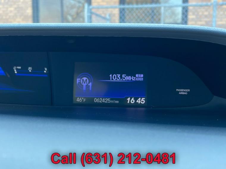 4 Cylinder Engine, ABS, 4-Wheel Disc Brakes, 5-Speed A/T, A/C, A/T, Adjustable Steering Wheel, Security System, Aluminum Wheels, AM/FM Stereo, Automatic Headlights, Auxiliary Audio Input, Power Outlet, Back-Up Camera, Brake Assist, Bucket Seats, CD Player, Child Safety Locks, Climate Control, Temporary Spare Tire, Cruise Control, Daytime Running Lights, Driver Air Bag, Driver Vanity Mirror, Stability Control, Emergency Trunk Release, Fog Lamps, Floor Mats, Front Reading Lamps, Front Wheel Drive, Gasoline Fuel, Heated Front Seat(s), Heated Mirrors, Intermittent Wipers, Keyless Entry, Leather Seats, Leather Steering Wheel, MP3 Player, Pass-Through Rear Seat, Passenger Air Bag, Passenger Air Bag Sensor, Passenger Vanity Mirror, Power Door Locks, Power Mirror(s), Power Steering, Sun/Moonroof, Power Windows, Rear Bench Seat, Rear Defrost, Rear Head Air Bag, Remote Trunk Release, Front Side Air Bag, Front Head Air Bag, Steering Wheel Audio Controls, Generic Sun/Moonroof, Tire Pressure Monitor, Tires - Front Performance, Tires - Rear Performance, Traction Control, Trip Computer, Variable Speed Intermittent Wipers, Engine Immobilizer, Bluetooth Connection, 16" alloy wheels, Body-colored bumpers, Body-colored door handles, Body-colored heated pwr mirrors, Compact spare tire & wheel, Fog lights, Multi-reflector auto-on/off halogen headlights, P205/55R16 all-season tires, Pwr tilt moonroof w/1-touch feature, Variable intermittent windshield wipers, 2-tier instrument panel w/blue backlit gauges -inc: tachometer, 60/40 fold down rear seatback -inc: adjustable head restraints, Auto climate control w/air filtration system, Cargo area light, Center console w/sliding armrest, storage compartment, Coin tray, Cruise control, Driver footrest, Dual visor vanity mirrors, Front & rear cup holders, Front & rear floor mats, Front door pocket storage bins, Front/center console 12V aux pwr outlets, Headlights-on reminder, Honda satellite-linked navigation system w/voice recognition, FM Traffic, Illuminated driver window/driver door lock controls, Illuminated steering wheel-mounted audio/cruise/phone/i-MID controls, Illuminated steering wheel-mounted audio/cruise/phone/i-MID/navigation controls, Immobilizer theft-deterrent system, Indicator lights -inc: trunk/door-open, low fuel/oil, coolant temp, front passenger front & front side airbag status, Intelligent multi-information display (i-MID) -inc: 5" LCD screen, customizable settings, digital odometer, (2) digital trip meters, digital fuel-mileage indicators, average speed, elapsed time, average fuel economy, miles-to-empty, audio system info, exterior temp, clock, Intelligent multi-information display (i-MID) -inc: 5" LCD screen, customizable settings, digital odometer, (2) digital trip meters, digital fuel-mileage indicators, average speed, elapsed time, average fuel economy, miles-to-empty, audio system info, exterior temp, clock, turn-by-turn navigation directions, Interior remote trunk release w/lock, Leather-trimmed reclining heated front bucket seats -inc: driver manual height adjustment, adjustable head restraints, leather-trimmed interior, Leather-wrapped steering wheel, Maintenance Minder system, Map lights, Passenger-side seatback pocket, Pwr door locks w/auto-lock feature, Pwr windows -inc: driver auto-up/down feature, Rear seat center armrest, Rear seat heater ducts, Rear window defroster w/timer, Remote entry -inc: remote trunk release, Remote fuel filler door release, Security system, Tilt/telescoping steering column, 1.8L SOHC MPFI 16-valve i-VTEC I4 engine, Aluminum-alloy engine block, Compact 5-speed automatic transmission w/OD, Drive-by-wire throttle, Eco Assist system, Front & rear stabilizer bars, Front wheel drive, MacPherson strut front suspension, Motion-adaptive electric pwr rack & pinion steering, Multi-link rear suspension, Pwr ventilated front/solid rear disc brakes, 2nd row lower anchors & tethers for children (LATCH) -inc: outboard lower anchors, tether anchors for all positions, 3-point seat belts in all seating positions -inc: front automatic tensioning system, adjustable front seat belt anchors, 4-wheel anti-lock braking system (ABS) w/electronic brake distribution (EBD), Advanced Compatibility Engineering (ACE) II body structure, Brake assist, Child-proof rear door locks, Daytime running lights, Driver & front passenger dual-stage, multiple-threshold airbags, Emergency trunk release, Front & rear side curtain airbags w/rollover sensor, Multi-angle rearview camera w/guidelines, Rearview camera w/guidelines, SmartVent front side-impact air bags w/passenger-side occupant detection system, Tire pressure monitoring system, Vehicle Stability Assist (VSA) w/traction control