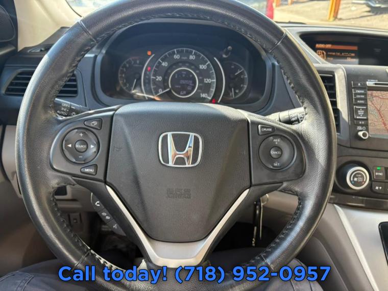 4 Cylinder Engine, ABS, 4-Wheel Disc Brakes, 5-Speed A/T, A/C, A/T, Adjustable Steering Wheel, Security System, Aluminum Wheels, AM/FM Stereo, Automatic Headlights, Auxiliary Audio Input, Power Outlet, Back-Up Camera, Brake Assist, Bucket Seats, Cargo Shade, CD Player, Child Safety Locks, Climate Control, Temporary Spare Tire, Cruise Control, Daytime Running Lights, Driver Air Bag, Driver Illuminated Vanity Mirror, Driver Adjustable Lumbar, Driver Vanity Mirror, Multi-Zone A/C, Auto-Dimming Rearview Mirror, Stability Control, Fog Lamps, Floor Mats, Front Reading Lamps, Front Wheel Drive, Gasoline Fuel, Heated Front Seat(s), Heated Mirrors, Intermittent Wipers, Keyless Entry, Leather Seats, Leather Steering Wheel, Luggage Rack, MP3 Player, Navigation from Telematics, Navigation System, Passenger Air Bag, Passenger Air Bag Sensor, Passenger Illuminated Visor Mirror, Passenger Vanity Mirror, Power Door Locks, Power Mirror(s), Power Driver Seat, Power Steering, Sun/Moonroof, Power Windows, Premium Sound System, Privacy Glass, Rear Bench Seat, Rear Defrost, Rear Head Air Bag, Rear Parking Aid, Requires Subscription, Satellite Radio, Front Side Air Bag, Front Head Air Bag, Steering Wheel Audio Controls, Generic Sun/Moonroof, Tire Pressure Monitor, Tires - Front All-Season, Tires - Rear All-Season, Traction Control, Trip Computer, Variable Speed Intermittent Wipers, Engine Immobilizer, Wheel Locks, Bluetooth Connection, 17" 10-spoke alloy wheels, Body-colored door handles, Body-colored folding heated pwr mirrors, Chrome grille, Compact spare tire, Fog lights, Full-length tail lights, Heat-rejecting green-tinted glass, Multi-reflector halogen headlamps w/auto-on/off, One-touch pwr moonroof w/tilt feature, P225/65TR17 all-season tires, Rear intermittent wiper w/washer, Rear privacy glass, Roof rails, Variable intermittent windshield wipers, (4) cargo area tie-down anchors, (8) cup holders, 12V pwr outlets -inc: front, center console, 60/40 split sliding fold & tumble forward rear seats w/rear center armrest, Cargo area light, Conversation mirror w/sunglasses holder, Cruise control, Door pocket storage bins, Driver-side garment hook, Dual illuminated visor vanity mirrors, Dual-zone auto climate control system, Floor mats, Front seatback pockets, Honda satellite-linked navigation system -inc: voice recognition, turn-by-turn directions, rearview camera, Immobilizer theft-deterrent system, Instrument panel w/blue & white backlit gauges, Instrument panel-mounted leather-wrapped shifter, Leather-wrapped steering wheel, Maintenance Minder system, Map lights, Multi-information display -inc: avg fuel economy, miles-to-empty, avg speed, Bluetooth, SMS text messaging , clock, compass, exterior temp, multi-angle rearview camera, Pandora internet radio, customizable door lock/interior light settings, oil-life indicator, Pwr door & tailgate locks, Pwr windows w/driver auto-up/down, Rear seat heater ducts, Rear window defroster, Reclining leather heated front bucket seats -inc: 10-way pwr driver seat, driver pwr lumbar, adjustable active head restraints, Remote entry system, Remote fuel filler door release, Retractable cargo cover, Security system, Steering wheel-mounted audio, cruise & phone controls, Steering wheel-mounted navigation controls, Tilt & telescopic steering column, 2.4L DOHC MPFI 16-valve i-VTEC I4 engine, 5-speed automatic transmission w/OD, Drive-by-Wire throttle system, Front & rear stabilizer bars, Front wheel drive, MacPherson strut front suspension, Motion-adaptive electric pwr rack-and-pinion steering, Multi-link rear suspension, Pwr front ventilated/rear solid disc brakes, 3-point seat belts in all seating positions -inc: front automatic tensioning system, front adjustable seat belt anchors, Advanced Compatibility Engineering (ACE) body structure, Anti-lock braking system (ABS) w/electronic brake distribution (EBD), Brake assist, Child-proof rear door locks, Daytime running lights (DRL), Dual-stage, multiple-threshold front airbags, Front side-impact airbags w/passenger-side occupant position detection system, Front/rear side curtain airbags w/rollover sensor, Hill start assist, Lower anchors & tethers for children (LATCH), Tire pressure monitoring system, Vehicle Stability Assist (VSA) w/traction control