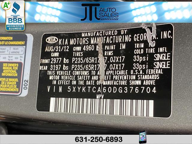For more information on this 2013 Kia Sorento, please call JTL Auto Sales at (631) 250-6893 or with the contact form on this page. This vehicle's vin number is 5XYKTCA60DG376704 and is recorded as being in stock at JTL Auto Sales at 504 Middle Country Rd in Selden. See all cars from this dealership.