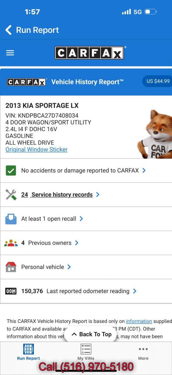 For more information on this 2013 Kia Sportage, please call Car Father at (516) 970-5180 or with the contact form on this page. This vehicle's vin number is KNDPBCA27D7408034 and is recorded as being in stock at Car Father at 4214 Austin Blvd in Island Park. See all cars from this dealership.