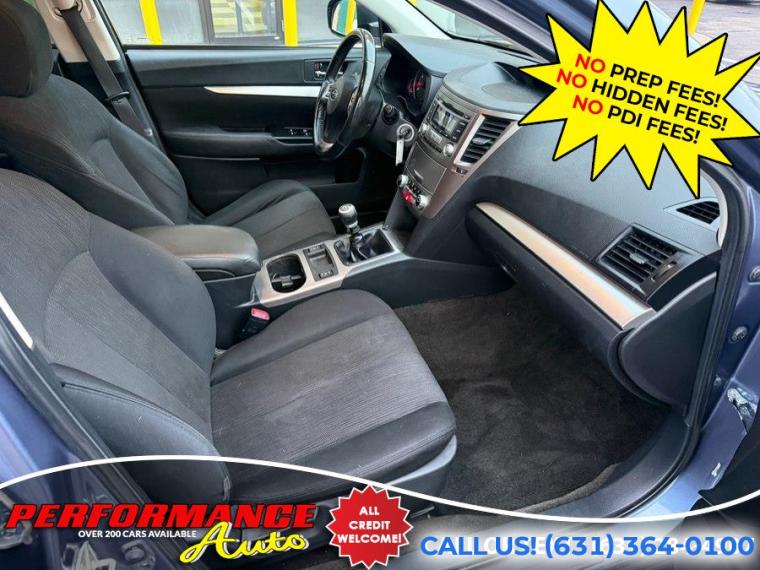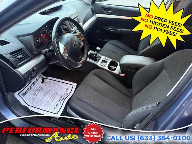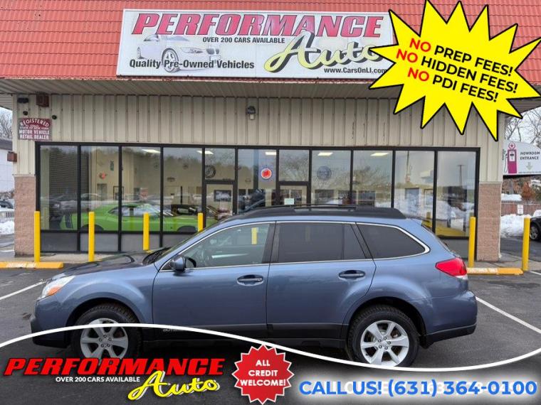 • 100% Clean Carfax! One Owner! RARE! MANUAL TRANSMISSION! Low Miles! Runs and Drives Great! Come in for a Test Drive! 2013 Subaru Outback 2.5i Premium 4x4! All Weather Package with Heated Seats! REMEMBER THE PERFORMANCE AUTO DIFFERENCE - NO PREP FEES! NO HIDDEN FEES! With apologies to all our customers, past and future: All of our competitors advertise cars using price structures that get their cars seen online, while no one sees ours. And so, after 25 years of business, we have to experiment with THEIR system. Therefore our advertised prices on third-party advertisers reflect a $2500 down payment or equivalent trade. It is NOT a HIDDEN FEE: we are completely up front and honest about why we have to try it. Our website clearly states the pricing on every vehicle. Third Party advertisers like Carfax, Cargurus and Autotrader etc. reward this price structure with better placement and badges. We have been asking third party advertisers for many years to give us a level playing field. We always succeed on a level playing field. Our competitors have downpayments between $2500-$9000 or even a % of price, then add hidden fees or require financing through them. Some dealers will not list a downpayment in their ads and you only find out when you go to see the vehicle. With us, financing is not required, but if you prefer to, we work with many banks to get you the best terms. We are sorry for any inconvenience, but pure pricing placed our vehicles at the bottom of search lists. We had no choice but to try advertising their way so that you can at least see our inventory, and hopefully we will do business. We have been selling quality cars with great reviews for 25 years. Our reputation is our strongest quality. We will do everything we can to satisfy you. It is no accident that 30% of our customers are repeat business.