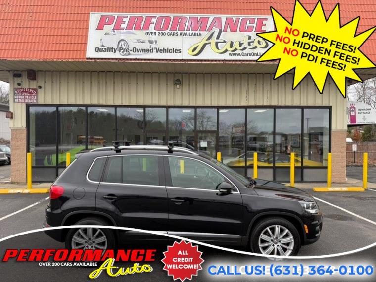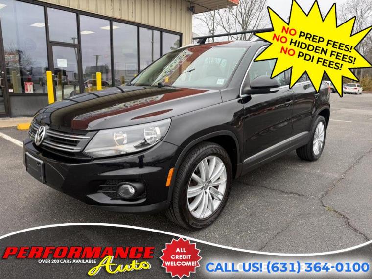 100% Clean Carfax! Sunroof! Leather! 2013 Volkswagen Tiguan SE 4x4! Runs and Drives Great! Come in for a Test Drive! REMEMBER THE PERFORMANCE AUTO DIFFERENCE - NO PREP FEES! NO HIDDEN FEES! With apologies to all our customers, past and future: All of our competitors advertise cars using price structures that get their cars seen online, while no one sees ours. And so, after 25 years of business, we have to experiment with THEIR system. Therefore our advertised prices on third-party advertisers reflect a $2500 down payment or equivalent trade. It is NOT a HIDDEN FEE: we are completely up front and honest about why we have to try it. Our website clearly states the pricing on every vehicle. Third Party advertisers like Carfax, Cargurus and Autotrader etc. reward this price structure with better placement and badges. We have been asking third party advertisers for many years to give us a level playing field. We always succeed on a level playing field. Our competitors have downpayments between $2500-$9000 or even a % of price, then add hidden fees or require financing through them. Some dealers will not list a downpayment in their ads and you only find out when you go to see the vehicle. With us, financing is not required, but if you prefer to, we work with many banks to get you the best terms. We are sorry for any inconvenience, but pure pricing placed our vehicles at the bottom of search lists. We had no choice but to try advertising their way so that you can at least see our inventory, and hopefully we will do business. We have been selling quality cars with great reviews for 25 years. Our reputation is our strongest quality. We will do everything we can to satisfy you. It is no accident that 30% of our customers are repeat business.