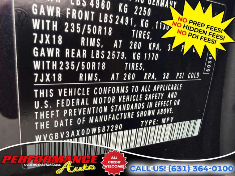 For more information on this 2013 Volkswagen Tiguan, please call Performance Auto Inc at (631) 364-0100 or with the contact form on this page. This vehicle's vin number is WVGBV3AX0DW587290 and is recorded as being in stock at Performance Auto Inc at 4475 Sunrise Highway in Bohemia. See all cars from this dealership.