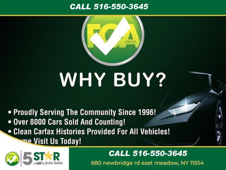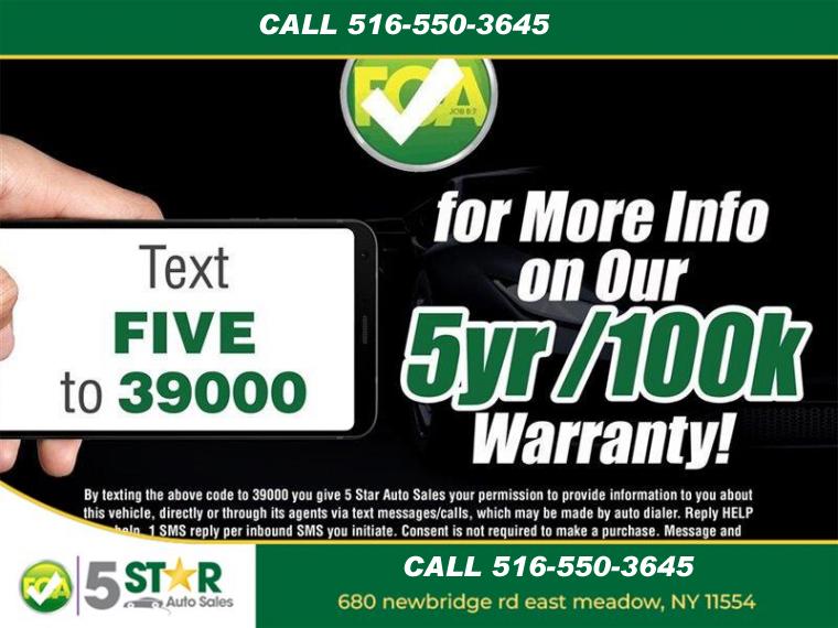 Disclaimer: All prices on used cars exclude the cost of vehicle registration, title, fees and taxes. Neither 5 Star Auto Sales nor Long Island Used Cars is responsible for typographical errors or misprints. All information should be double checked with dealer including pricing and availability. Additionally, some states require dealers to notify consumers that all vehicles may be subject to open recall(s). Vehicles can be checked for open recalls by visiting www.SaferCar.gov or www.nhtsa.gov/recalls. Vehicles are subject to prior sale and may no longer be available. Please check with the seller for more information. You can check for recall status with this RECALL STATUS LINK.