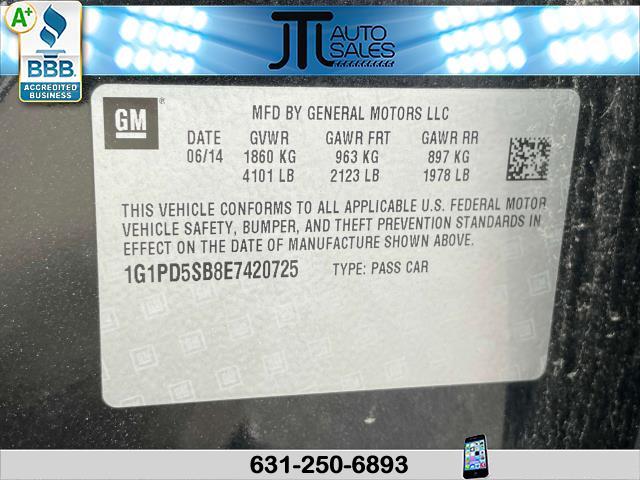 For more information on this 2014 Chevrolet Cruze, please call JTL Auto Sales at (631) 250-6893 or with the contact form on this page. This vehicle's vin number is 1G1PD5SB8E7420725 and is recorded as being in stock at JTL Auto Sales at 504 Middle Country Rd in Selden. See all cars from this dealership.