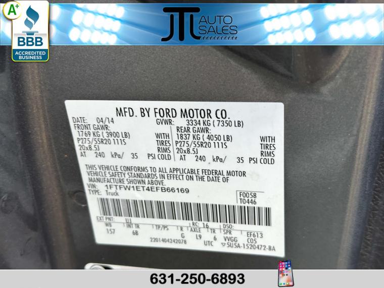 For more information on this 2014 Ford F-150, please call JTL Auto Sales at (631) 250-6893 or with the contact form on this page. This vehicle's vin number is 1FTFW1ET4EFB66169 and is recorded as being in stock at JTL Auto Sales at 504 Middle Country Rd in Selden. See all cars from this dealership.