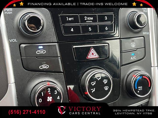 Option Group 1, 6 Speakers, AM/FM radio: SiriusXM, CD player, Radio: AM/FM/SiriusXM/CD/MP3 Audio System, Air Conditioning, Rear window defroster, Power steering, Power windows, Remote keyless entry, Steering wheel mounted audio controls, Four wheel independent suspension, Speed-sensing steering, Traction control, 4-Wheel Disc Brakes, ABS brakes, Anti-whiplash front head restraints, Dual front impact airbags, Dual front side impact airbags, Emergency communication system: Blue Link, Front anti-roll bar, Low tire pressure warning, Occupant sensing airbag, Overhead airbag, Rear anti-roll bar, Brake assist, Electronic Stability Control, Delay-off headlights, Panic alarm, Security system, Speed control, Bumpers: body-color, Heated door mirrors, Power door mirrors, Cargo Mat, Carpeted Floor Mats, Driver door bin, Driver vanity mirror, Front reading lights, Illuminated entry, Outside temperature display, Overhead console, Passenger vanity mirror, Rear seat center armrest, Tachometer, Telescoping steering wheel, Tilt steering wheel, Trip computer, Front Bucket Seats, Heated Front Bucket Seats, Premium Cloth Seating Surfaces, Split folding rear seat, Cargo Net, Front Center Armrest w/Storage, Passenger door bin, 16 x 6.5J Aluminum Alloy Wheels, Alloy wheels, Speed-Sensitive Wipers, Variably intermittent wipers