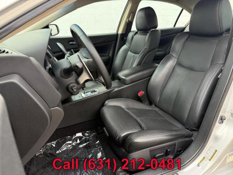 ABS, 4-Wheel Disc Brakes, A/C, A/T, Security System, Aluminum Wheels, AM/FM Stereo, Automatic Headlights, Auxiliary Audio Input, Back-Up Camera, Brake Assist, Bucket Seats, CD Player, Child Safety Locks, Climate Control, Temporary Spare Tire, CVT Transmission, Cruise Control, Driver Air Bag, Driver Illuminated Vanity Mirror, Driver Adjustable Lumbar, Driver Vanity Mirror, Multi-Zone A/C, Auto-Dimming Rearview Mirror, Stability Control, Fog Lamps, Front Wheel Drive, Gasoline Fuel, HID headlights, Integrated Turn Signal Mirrors, Intermittent Wipers, Keyless Entry, Keyless Start, MP3 Player, Passenger Air Bag, Passenger Air Bag Sensor, Passenger Illuminated Visor Mirror, Passenger Vanity Mirror, Power Door Locks, Power Driver Seat, Power Passenger Seat, Power Steering, Power Windows, Rear Bench Seat, Rear Defrost, Rear Head Air Bag, Satellite Radio, Front Side Air Bag, Front Head Air Bag, Steering Wheel Audio Controls, Generic Sun/Moonroof, Tire Pressure Monitor, Tires - Front Performance, Tires - Rear Performance, Traction Control, Trip Computer, Universal Garage Door Opener, V6 Cylinder Engine, Variable Speed Intermittent Wipers, Engine Immobilizer, Bluetooth Connection, 8" Wheels, Body-Colored Front Bumper, Body-Colored Power Side Mirrors w/Manual Folding and Turn Signal Indicator, Body-Colored Rear Bumper, Body-Colored Side Mirrors w/Manual Folding and Turn Signal Indicator, Chrome Door Handles, Chrome Grille, Chrome Side Windows Trim and Black Front Windshield Trim, Clearcoat Paint, Compact Spare Tire Mounted Inside Under Cargo, Express Open/Close Sliding And Tilting Glass 1st Row Sunroof, Express Open/Close Sliding And Tilting Glass 1st Row Sunroof w/Sunshade, Fixed Rear Window w/Defroster, Front Fog Lamps, Front License Plate Bracket, Front Windshield -inc: Sun Visor Strip, Fully Automatic Projector Beam High Intensity Low Beam Headlamps w/Delay-Off, Galvanized Steel/Aluminum Panels, LED Brakelights, Light Tinted Glass, Speed Sensitive Variable Intermittent Wipers, Steel Spare Wheel, Tires: P245/40VR19 All-Season, Tires: P245/45R18 V-Rated AS Radial, Trunk Rear Cargo Access, Wheels: 18" Aluminum-Alloy, Wheels: 19" Aluminum Dark Hyper Silver, 2 12V DC Power Outlets, 2 Seatback Storage Pockets, 60-40 Folding Bench Front Facing Fold Forward Seatback Rear Seat, Air Filtration, Analog Display, Bench Front Facing Rear Seat, Cargo Space Lights, Carpet Floor Trim and Carpet Trunk Lid/Rear Cargo Door Trim, Compass, Cruise Control w/Steering Wheel Controls, Day-Night Auto-Dimming Rearview Mirror, Delayed Accessory Power, Driver And Passenger Door Bins, Driver And Passenger Visor Vanity Mirrors w/Driver And Passenger Illumination, Driver And Passenger Auxiliary Mirror, Driver Foot Rest, Dual Zone Front Automatic Air Conditioning, Engine Immobilizer, Fade-To-Off Interior Lighting, FOB Controls -inc: Trunk/Hatch/Tailgate and Windows, Front And Rear Map Lights, Front Bucket Seats -inc: 8-way power driver's seat, driver's seat manual thigh support extension, driver's power lumbar support and 4-way power passenger's seat, Front Center Armrest w/Storage, Front Center Armrest w/Storage and Rear Center Armrest, Front Cupholder, Full Carpet Floor Covering, Full Cloth Headliner, Full Floor Console w/Covered Storage, Mini Overhead Console w/Storage and 2 12V DC Power Outlets, Gauges -inc: Speedometer, Odometer, Engine Coolant Temp, Tachometer, Trip Odometer and Trip Computer, HomeLink Garage Door Transmitter, HVAC -inc: Underseat Ducts and Console Ducts, Illuminated Locking Glove Box, Interior Trim -inc: Chrome And Metal-Look Interior Accents, Interior Trim -inc: Piano Black Instrument Panel Insert, Piano Black Door Panel Insert, Piano Black Console Insert, Chrome And Metal-Look Interior Accents, Leather Gear Shift Knob, Leather Steering Wheel, Leather-Appointed Seat Trim, Manual Anti-Whiplash Adjustable Front Head Restraints and Manual Adjustable Rear Head Restraints, Manual Tilt/Telescoping Steering Column, Mini Overhead Console and 2 12V DC Power Outlets, Mini Overhead Console w/Storage and 2 12V DC Power Outlets, Outside Temp Gauge, Perimeter Alarm, Power 1st Row Windows w/Driver And Passenger 1-Touch Up/Down, Power Door Locks w/Autolock Feature, Power Fuel Flap Locking Type, Power Rear Windows, Proximity Key For Doors And Push Button Start, Rear Cupholder, Remote Keyless Entry w/Integrated Key Transmitter, 4 Door Curb/Courtesy, Illuminated Entry, Illuminated Ignition Switch and Panic Button, Remote Releases -Inc: Power Cargo Access, Seats w/Leatherette Back Material, Trip Computer, Valet Function, Vinyl Door Trim Insert, 130 Amp Alternator, 20 Gal. Fuel Tank, 4-Wheel Disc Brakes w/4-Wheel ABS, Front Vented Discs and Brake Assist, 4698# Gvwr, 5.17 Axle Ratio, 55-Amp/Hr 550CCA Maintenance-Free Battery w/Run Down Protection, Engine: 3.5L DOHC 24-Valve V6, Front And Rear Anti-Roll Bars, Front-Wheel Drive, Gas-Pressurized Shock Absorbers, Hydraulic Power-Assist Speed-Sensing Steering, Multi-Link Rear Suspension w/Coil Springs, Quasi-Dual Stainless Steel Exhaust w/Chrome Tailpipe Finisher, Sport-Tuned Suspension, Strut Front Suspension w/Coil Springs, Transmission w/Driver Selectable Mode, Transmission w/Driver Selectable Mode and Sequential Shift Control, Transmission: Continuously Variable (CVT), ABS And Driveline Traction Control, Airbag Occupancy Sensor, Curtain 1st And 2nd Row Airbags, Dual Stage Driver And Passenger Front Airbags, Dual Stage Driver And Passenger Seat-Mounted Side Airbags, Electronic Stability Control (ESC), Outboard Front Lap And Shoulder Safety Belts -inc: Rear Center 3 Point, Height Adjusters and Pretensioners, Rear Child Safety Locks, RearView Monitor Back-Up Camera, Side Impact Beams, Tire Specific Low Tire Pressure Warning