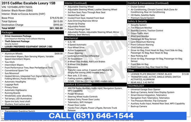 2015 Cadillac Escalade Black Raven 4WD, Shale W/Cocoa Accents Leather. Odometer is 11313 miles below market average! Priced below KBB Fair Purchase Price!