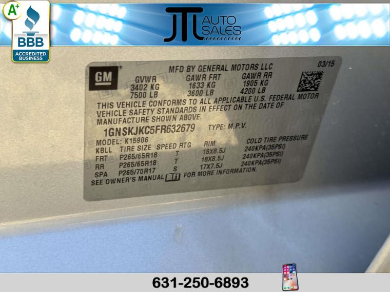For more information on this 2015 Chevrolet Suburban, please call JTL Auto Sales at (631) 250-6893 or with the contact form on this page. This vehicle's vin number is 1GNSKJKC5FR632679 and is recorded as being in stock at JTL Auto Sales at 504 Middle Country Rd in Selden. See all cars from this dealership.