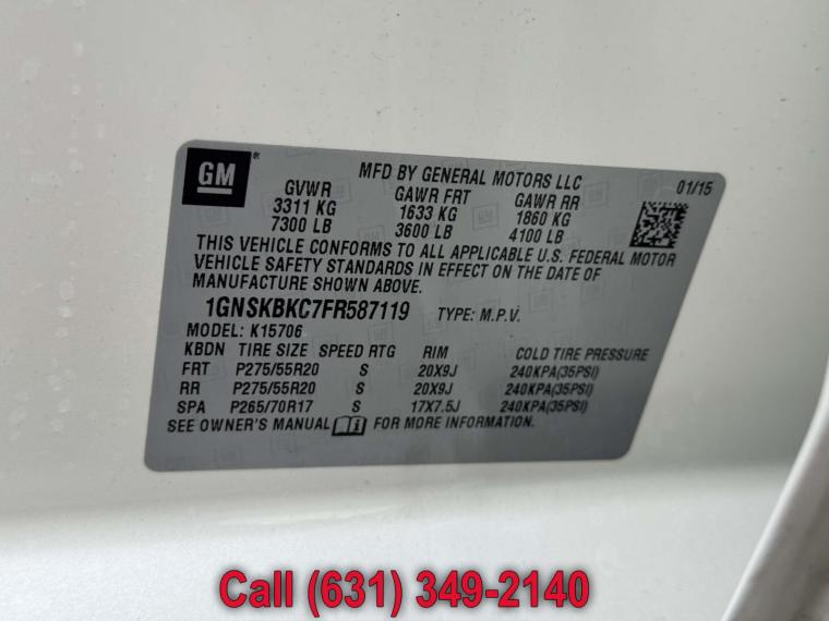 For more information on this 2015 Chevrolet Tahoe, please call Certified Headquarters at (631) 349-2140 or with the contact form on this page. This vehicle's vin number is 1GNSKBKC7FR587119 and is recorded as being in stock at Certified Headquarters at 873 Middle Country Rd in St James. See all cars from this dealership.