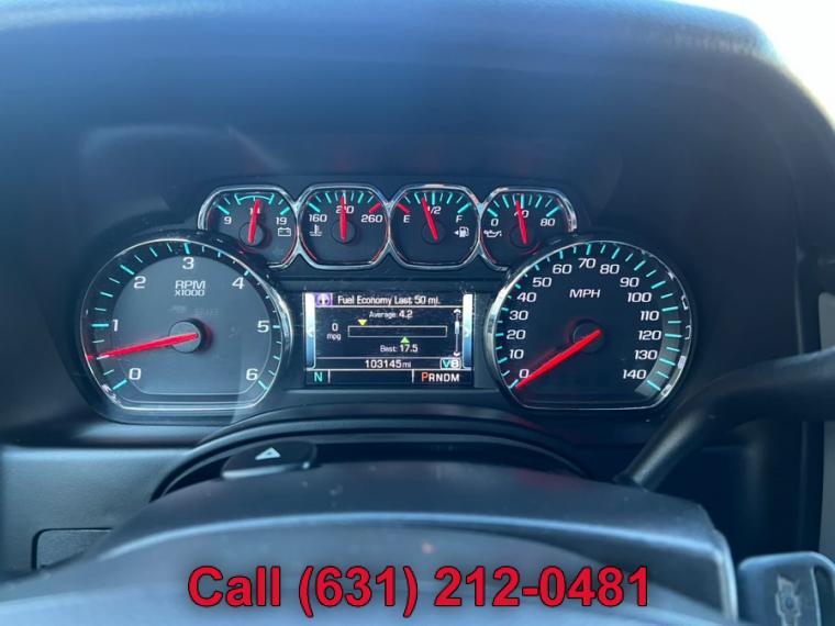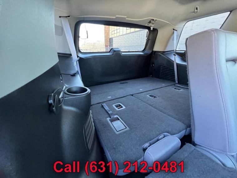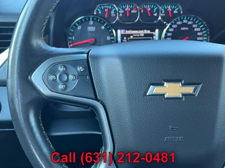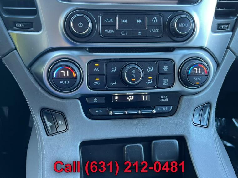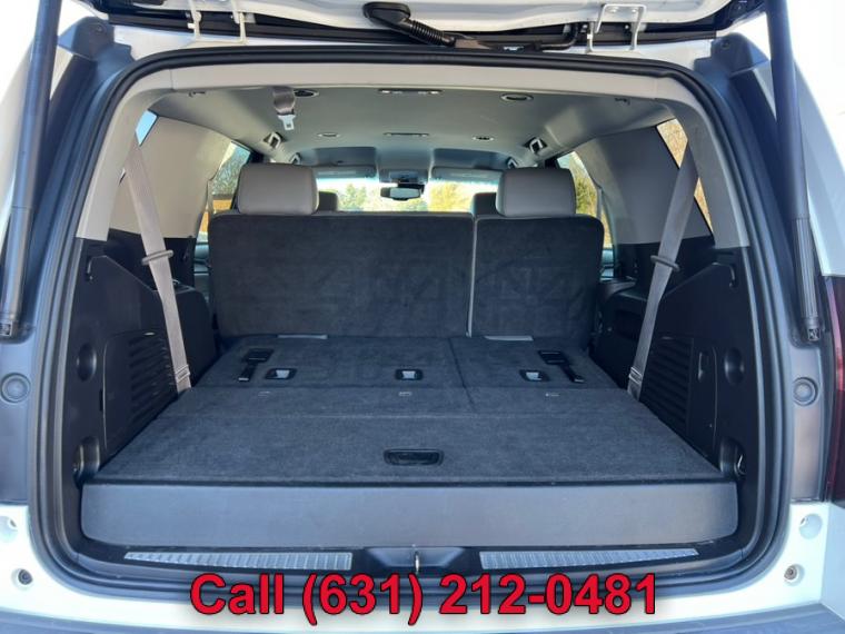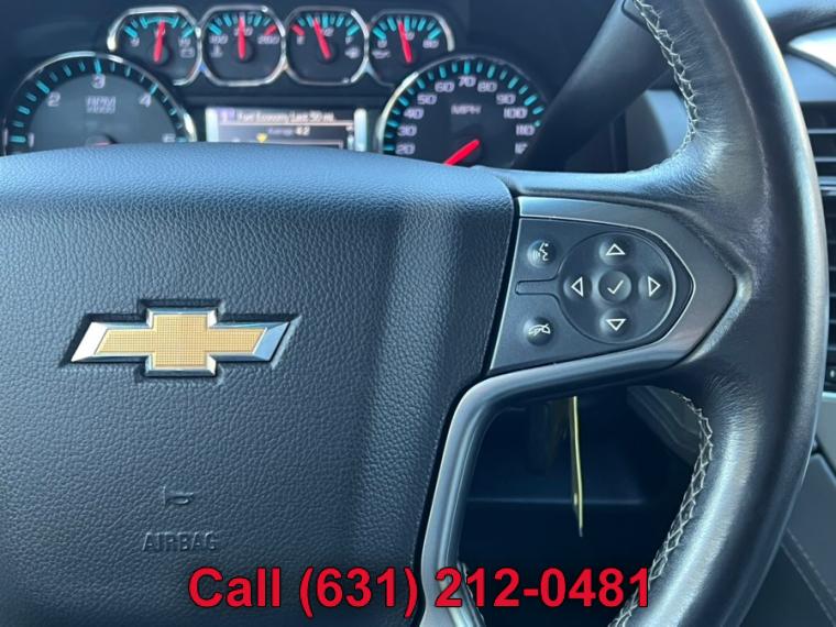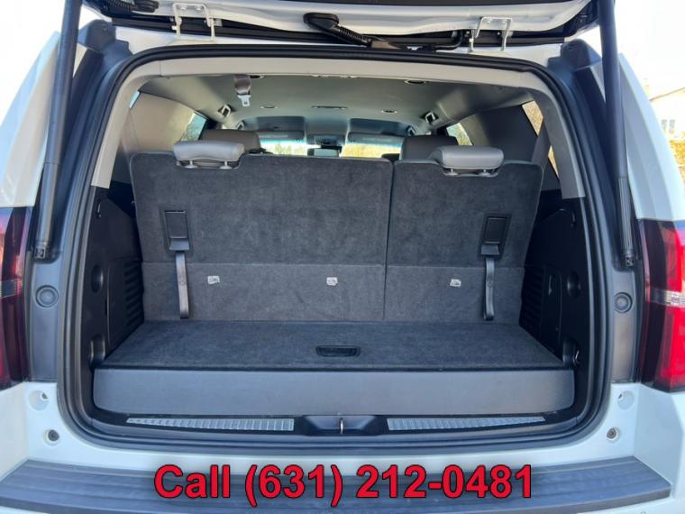 ABS, 4-Wheel Disc Brakes, 6-Speed A/T, 8 Cylinder Engine, A/C, A/T, 3rd Row Seat, Adjustable Pedals, Adjustable Steering Wheel, Security System, AM/FM Stereo, Automatic Headlights, Auxiliary Audio Input, Back-Up Camera, Brake Assist, Bucket Seats, CD Player, Climate Control, Cruise Control, Daytime Running Lights, Driver Air Bag, Driver Adjustable Lumbar, Multi-Zone A/C, Auto-Dimming Rearview Mirror, Stability Control, Four Wheel Drive, Front Collision Warning, Floor Mats, Conventional Spare Tire, Gasoline Fuel, HD Radio, Heated Front Seat(s), Heated Mirrors, Intermittent Wipers, Keyless Entry, Lane Departure Warning, Leather Seats, Leather Steering Wheel, Locking/Limited Slip Differential, MP3 Capability, Navigation from Telematics, Telematics, Pass-Through Rear Seat, Passenger Air Bag, Passenger Air Bag Sensor, Passenger Adjustable Lumbar, Power Door Locks, Power Mirror(s), Power Driver Seat, Power Liftgate, Power Passenger Seat, Power Steering, Power Windows, Premium Sound System, Rain Sensing Wipers, Rear A/C, Rear Defrost, Rear Head Air Bag, Rear Parking Aid, Remote Engine Start, Remote Trunk Release, Requires Subscription, Running Boards/Side Steps, Satellite Radio, Seat Memory, Front Side Air Bag, Front Head Air Bag, Smart Device Integration, Steering Wheel Audio Controls, Tire Pressure Monitor, Traction Control, Tow Hitch, Transmission Overdrive Switch, Universal Garage Door Opener, Variable Speed Intermittent Wipers, WiFi Hotspot, Assist steps, Black, Daytime Running Lamps, with automatic exterior lamp control, Fascia, front body-color, Fascia, rear color-keyed, Liftgate with glass, power, Luggage rack side rails, roof-mounted, Mirrors, outside heated power-adjustable, manual-folding and color keyed, Tire carrier, lockable outside spare, winch-type mounted under frame at rear, Tire, spare P265/70R17 all-season, blackwall, Tires, P265/65R18 all-season, blackwall, Wheel, full-size spare, 17" (43.2 cm) steel, Wheels, 18" x 8.5" (45.7 cm x 21.6 cm) aluminum with high-polished finish, Wiper, rear intermittent with washer, Wipers, front intermittent, Rainsense, Assist handles, all seats, Cargo management system, Cargo net, Climate control, tri-zone automatic with individual climate settings for driver, right-front passenger and rear passengers, Console, floor with storage area, cup holders, SD card slot and auxiliary jack, Conversation mirror (Deleted when (UTT) Theft Protection Package is ordered.), Cruise control, electronic with set and resume speed, Defogger, rear-window electric, Display, driver instrument information enhanced, multi-color, Door locks, power programmable with lockout protection, Floor covering, color-keyed carpeting, Floor mats, color-keyed carpeted first and second row, removable (Deleted when (Z71) Off-Road Package is ordered.), Lighting, interior with dome light, driver- and passenger-side door switch with delayed entry feature, cargo lights, door handle or Remote Keyless Entry-activated illuminated entry and map lights in front and second seat positions., Memory settings recalls presets for driver power seat adjuster and pedals (When (PCK) Luxury Package is ordered, also includes memory presets for outside rearview mirrors and power steering column.), Mirror, inside rearview auto-dimming, OnStar with 4G LTE provides a built-in Wi-Fi hotspot to connect to the internet at 4G LTE speeds (Only on vehicles built after 10/5/14. Visit www.onstar.com for vehicle availability, details and system limitations. Services and connectivity may vary by model and conditions. 4G LTE service available in select markets. 4G LTE performance based on ind, Pedals, power-adjustable for accelerator and brake, Power outlet, 110-volt, Power outlets, 5 auxiliary, 12-volt includes outlets in the instrument panel, console, back of console, 1 in 3rd row and 1 in cargo area (when bench seat is ordered, the outlet on the back of the console is lost), Remote Keyless Entry, extended-range (Not included when (PCK) Luxury Package is ordered.), Remote vehicle start, Seat adjuster, front passenger 6-way power, Seat trim, leather-appointed front seats, Seat, third row manual 60/40 split-folding bench, fold flat (Not included when (PCK) Luxury Package is ordered.), Seating, front bucket with leather-appointed seating heated seat cushions and seat backs, 10-way power driver and passenger seat includes 6-way power cushions, driver seat 2-position memory, 2-way power lumbar control and power recline, Seats, second row 60/40 split-folding bench, manual, Steering column, manual tilt and telescopic, Steering wheel controls, mounted audio and cruise controls includes Driver Information Center controls, Steering wheel, leather-wrapped, Universal Home Remote includes garage door opener, programmable, Windows, power, all express down, front express up, 4-wheel drive, Alternator, 150 amps, Battery, 720 cold cranking amps with 80 amp hour rating, Cooling, auxiliary transmission oil cooler, heavy-duty air-to-oil, Cooling, external engine oil cooler, heavy-duty air-to-oil integral to driver side of radiator, Differential, heavy-duty locking rear, Engine, 5.3L EcoTec3 V8 with Active Fuel Management, Direct Injection and Variable Valve Timing includes aluminum block construction (355 hp [265 kW] @ 5600 rpm, 383 lb-ft of torque [518 N-m] @ 4100 rpm), GVWR, 7300 lbs. (3311 kg), Rear axle, 3.08 ratio (Not available with (NHT) Max Trailering Package.), Steering, power, Suspension Package, Premium Smooth Ride (Not available with (NHT) Max Trailering Package.), Suspension, front coil-over-shock with stabilizer bar, Suspension, rear multi-link with coil springs, Trailering equipment includes trailering hitch platform, 7-wire harness with independent fused trailering circuits mated to a 7-way sealed connector and 2" trailering receiver, Transfer case, active, single-speed, electronic Autotrac with rotary controls, does not include neutral. Cannot be dinghy towed (Requires 4WD model. Not available with (NHT) Max Trailering 